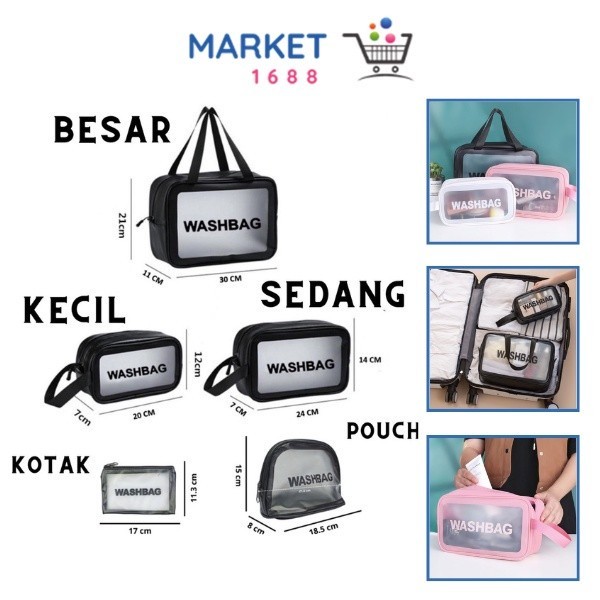 MARKET1688 TAS KOSMETIK TRANSPARANT WASHBAG POUCH TRAVEL MAKE UP BAG ORGANIZER DOMPET KOSMETIK TOILETRY WATERPROOF POUCH