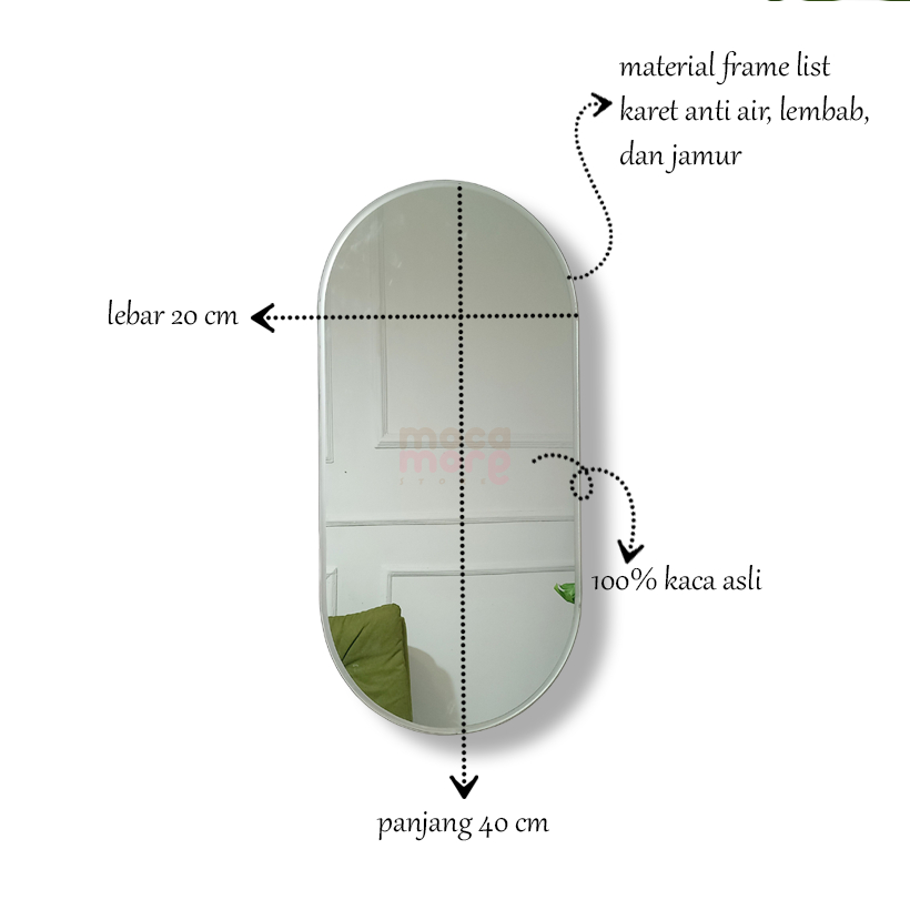 CERMIN OVAL DINDING GANTUNG LUCU MAKEUP KAMAR MANDI 40 X 20 CM