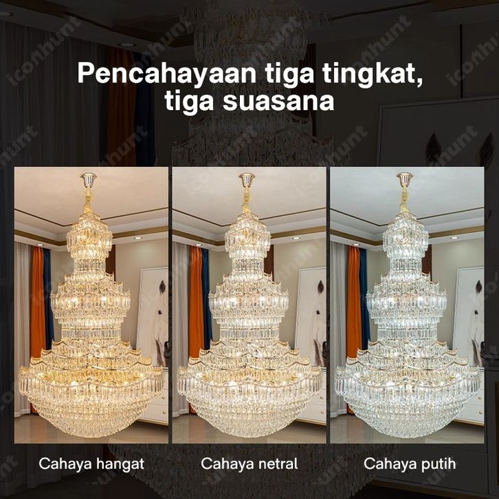 Lampu Hias Gantung 80.125cm/100.155cm (Free Bohlam) Mewah Aesthetic Kristal Chandelier Ruang Tamu