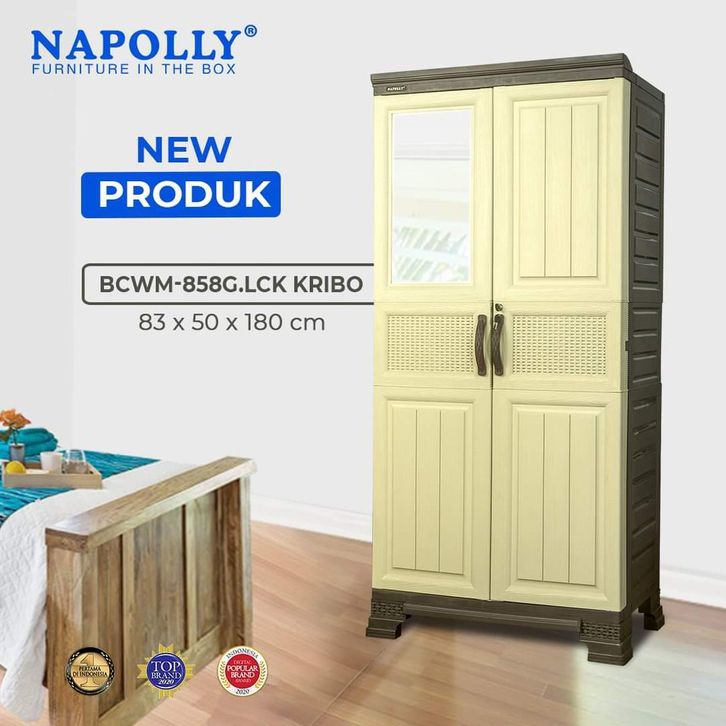 PROMO Lemari Pakaian plastik napolly + Kaca + Rak/Gantung SUDAH DIRAKIT KHUSUS BANDAR LAMPUNG ORIGINAL