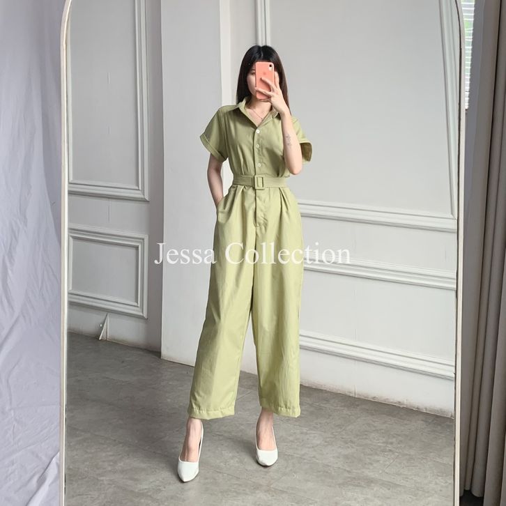 Pieters Long Jumpsuit TH 1102 / 1113 KATUN OXFORD Overall Wanita Celana Panjang Lengan Pendek Motif Polos Casual Simple