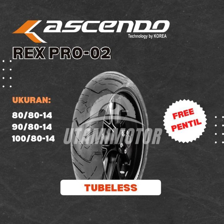 BAN MOTOR ASCENDO REX PRO-02 RING 14 80/80-14 90/80-14 100/80-14 TUBELESS