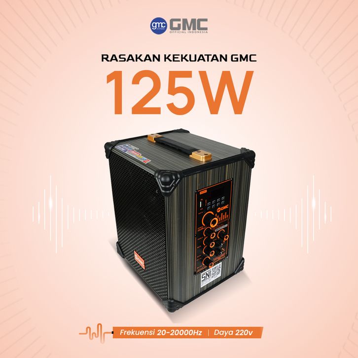 GMC Speaker 899P Speaker Karaoke Bluetooth 6.5"125W, 2 Mic Wireless UHF, USB, SD, AV In, RadioFM Original