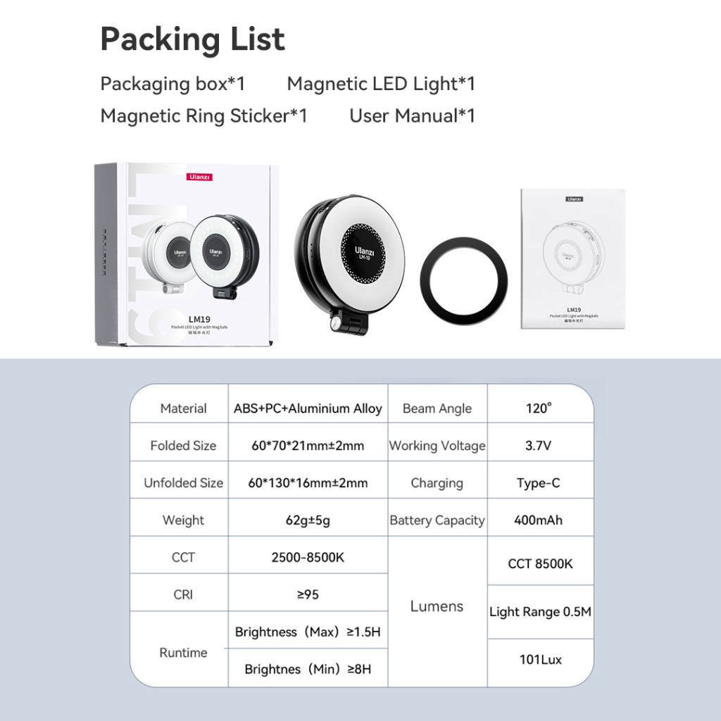 ULANZI LM-19 Magsafe Led Fill Light Ring Light Selfie Light - Hitam