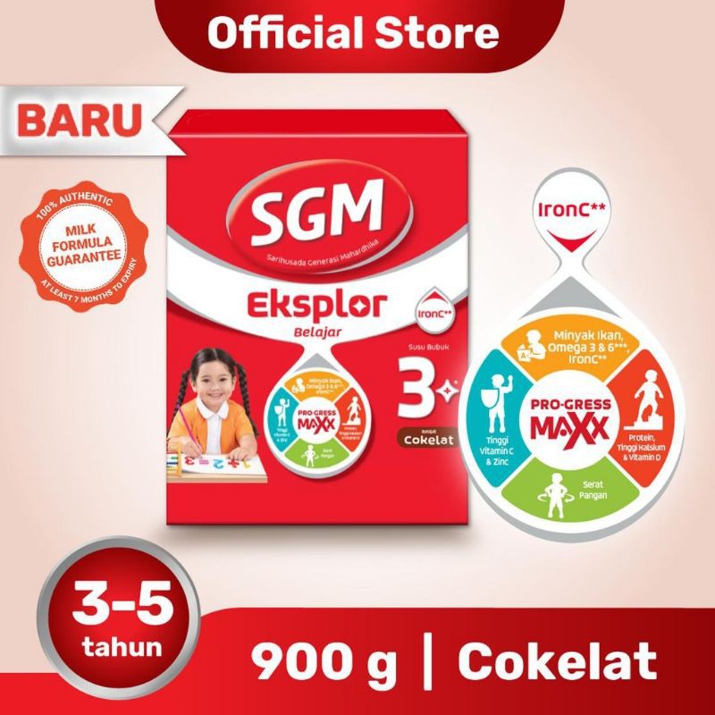 SGM Eksplor Belajar 3+ Pro-GressMaxx Susu Bubuk MADU / VANILLA / COKLAT 900 GR