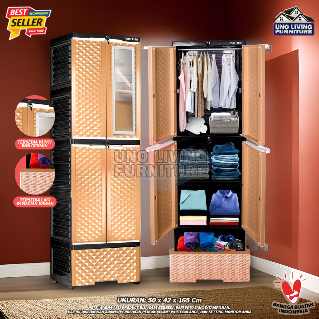 Lemari Pakaian Plastik Gantung dan Laci Lemari Pintu Rak Serbaguna LS2PL TABITHA Dengan Cermin