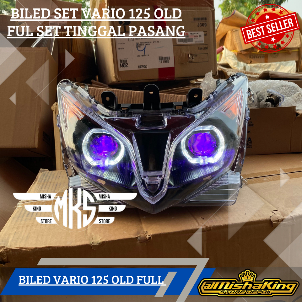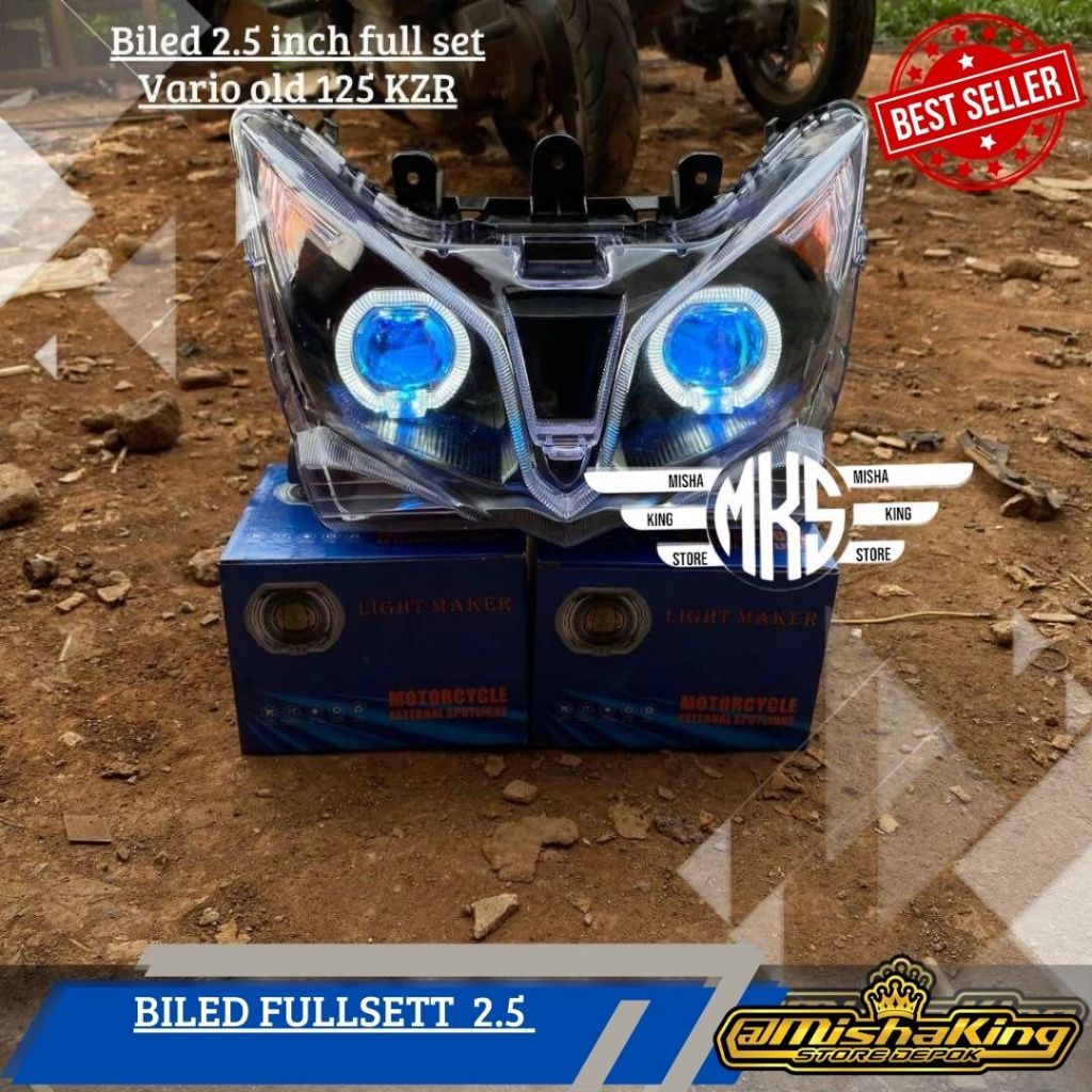 Reflektor Lampu Depan Vario 125 Fi Old Kzr Custom Smoke Hitam Full Set Biled Projie 2.5 Inci Body Black
