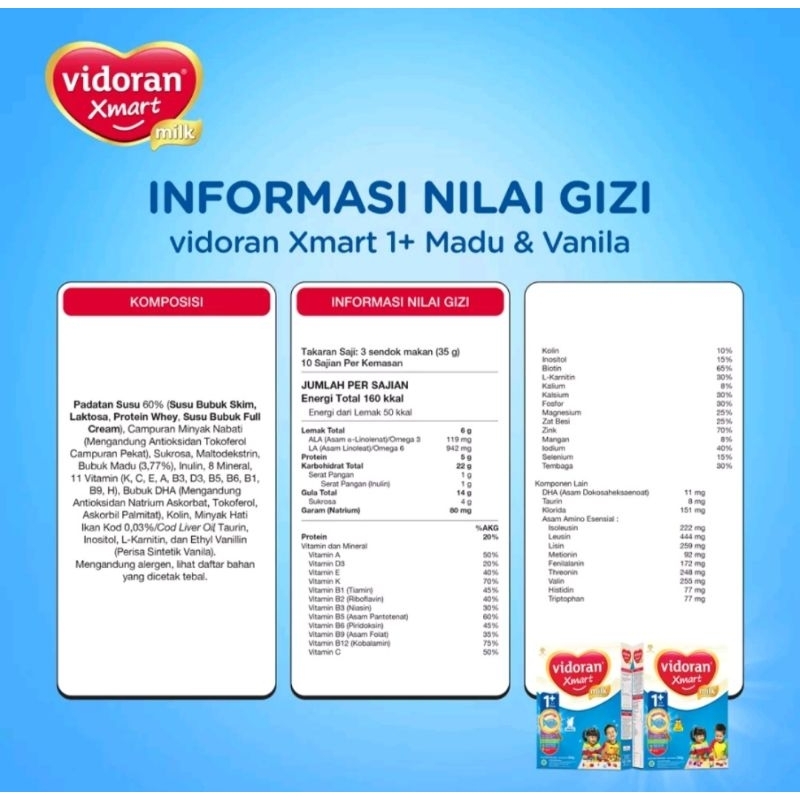 TERMURAH !!! VIDORAN Xmart 1+ 925gr Madu | Vanila