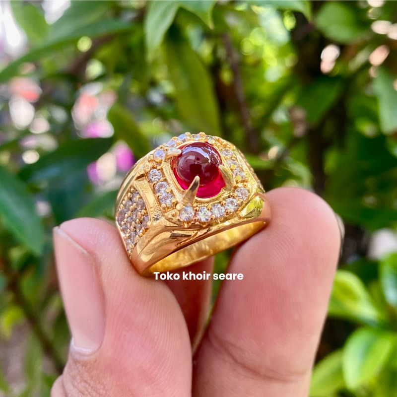 CINCIN BATU MERAH DELIMA ASLI SUPER MINIMALIS MEWAH / BATU PERMATA CINCIN / CINCIN BATU AKIK