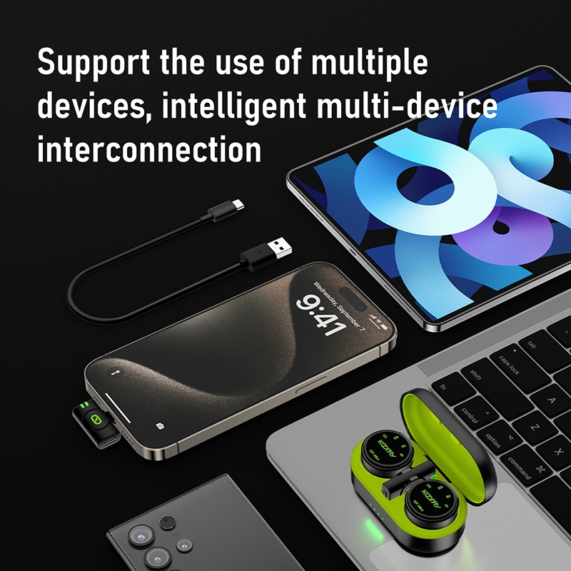 Koorfly Kf-Mini Mic Wireless Clip On Microphone Bluetooth Dual Mikrofon Nirkabel | 40H Battery | Jarak 40m