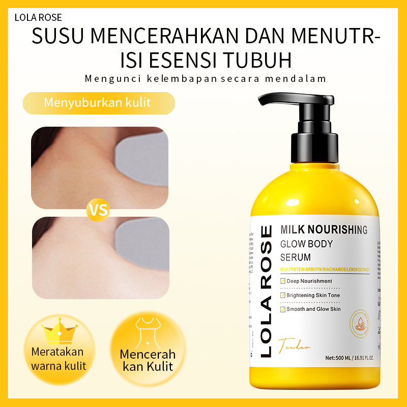LOLA ROSE Sabun Mandi Pemutih Susu | Body Wash Cerah & Lembut | Niacinamide + Arbutin 500ML