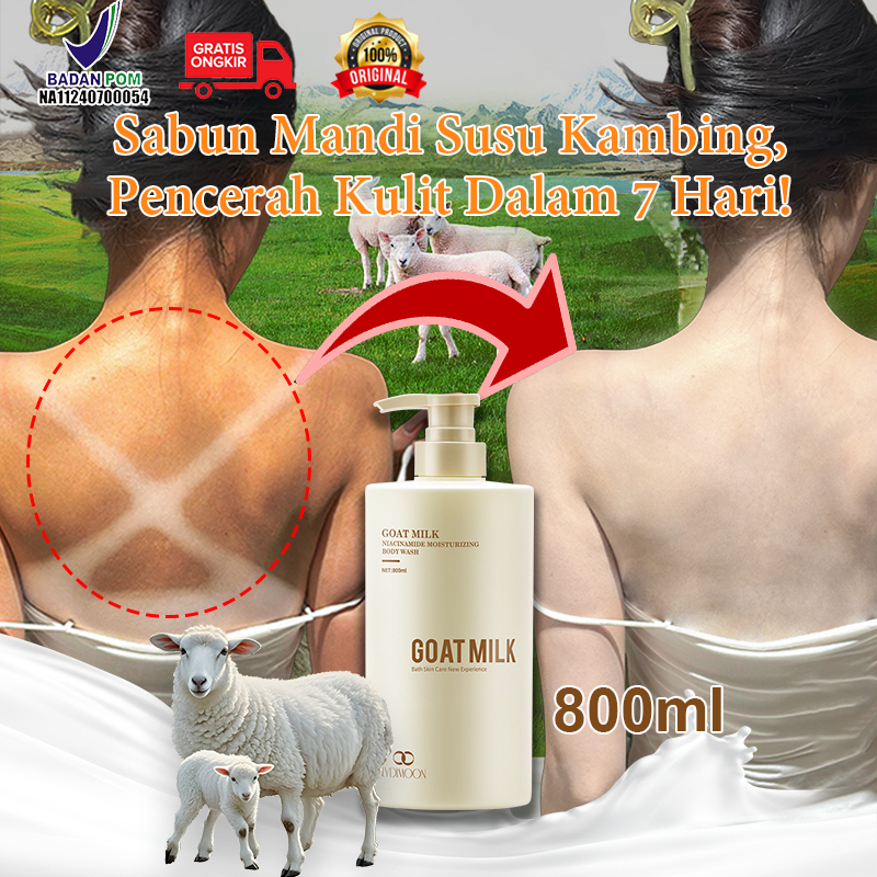 Sabun pemutih badan Sabun mandi cair Whitening body wash 800ml goat milk Niacinamide lembut body wash memutihkan melemba