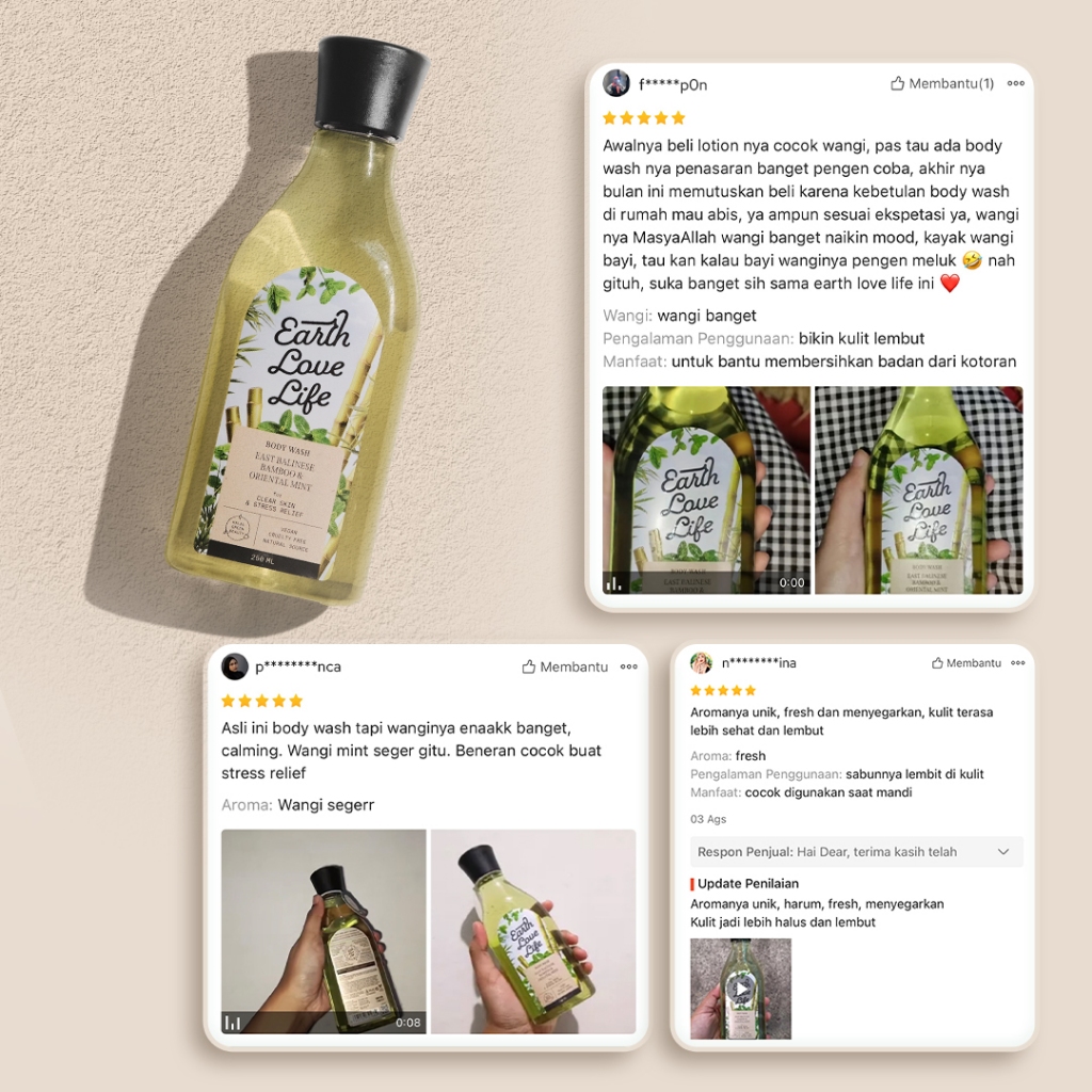 EARTH LOVE LIFE East Balinese Bamboo & Oriental Mint Body Wash 250ml SABUN WANGI | SABUN MANDI CAIR | LOTION WANGI | SAB