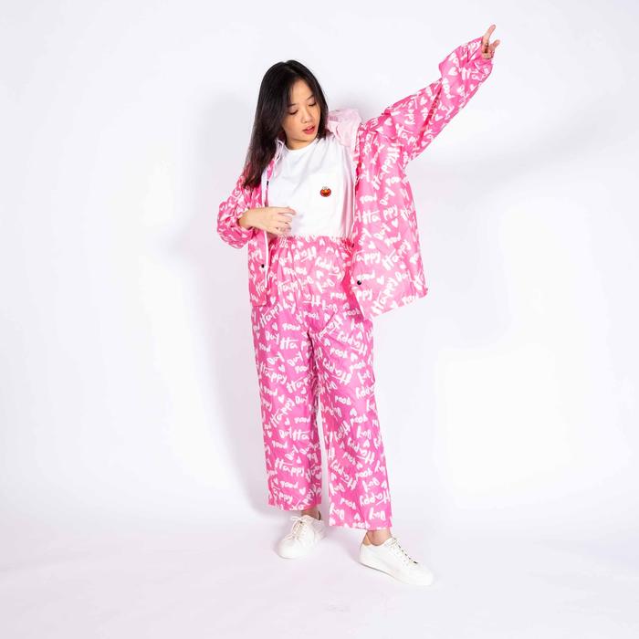 Promo Jktumbrella / Jas hujan setelan / jaket / celana / motif / Happy / GRC - 81018 - Maroon M Elegan