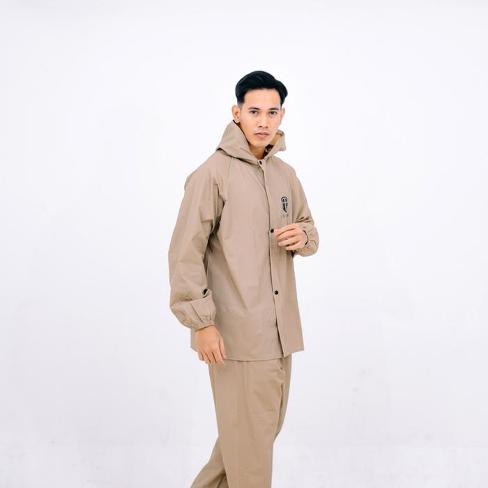 Promo Jas Hujan ARMOR Setelan Bahan Karet Pvc Tebal - Hitam L Elegan