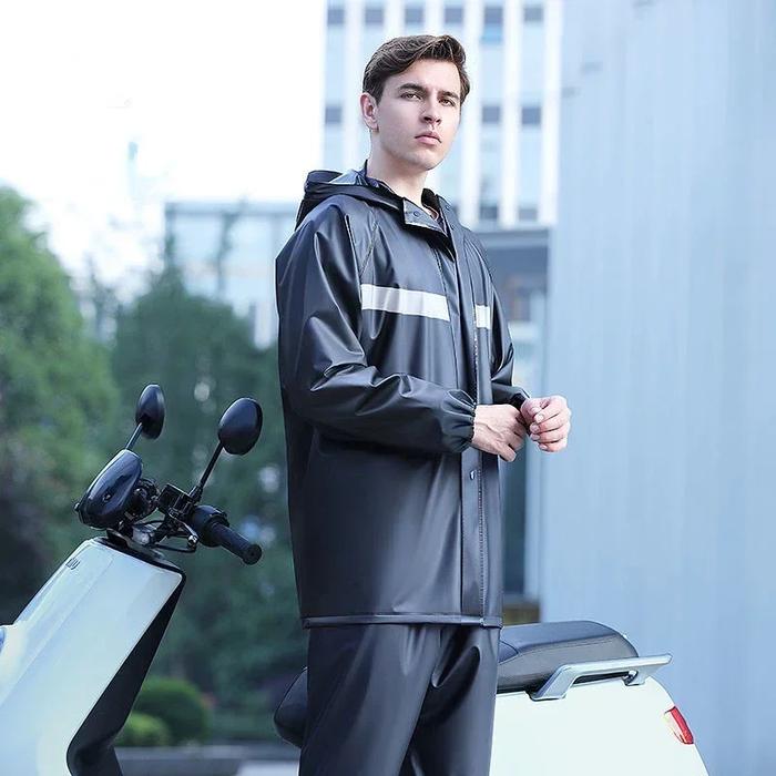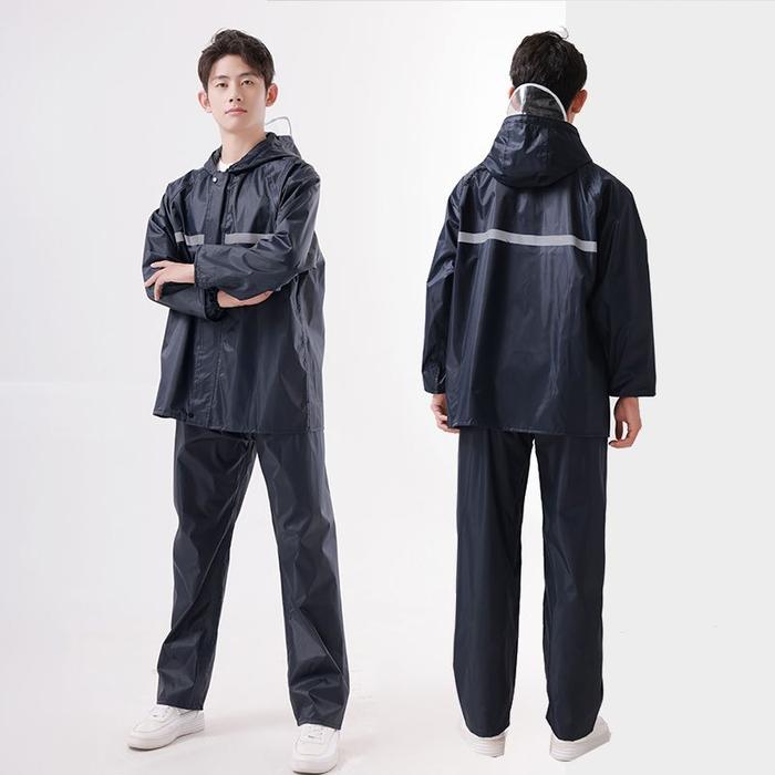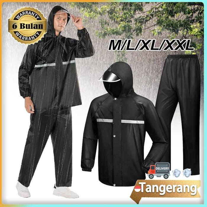 Murah Jas Hujan Tebal Anti Angin Oxford Cloth Mantel Hujan Setelan Pria Wanita - XL Elegan