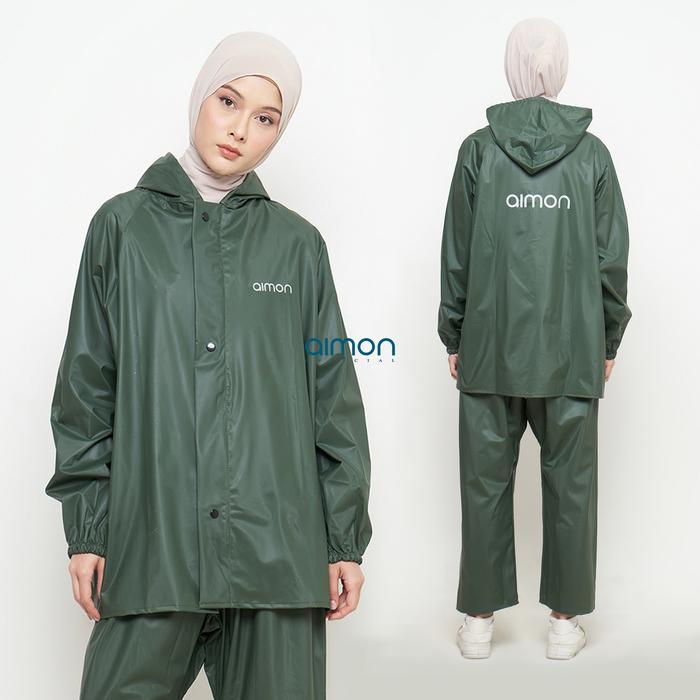Terlaris Aimon Jas Hujan Dewasa Pria Wanita Setelan PVC Tahan Air Raincoat Sepeda Motor - Hitam L Elegan