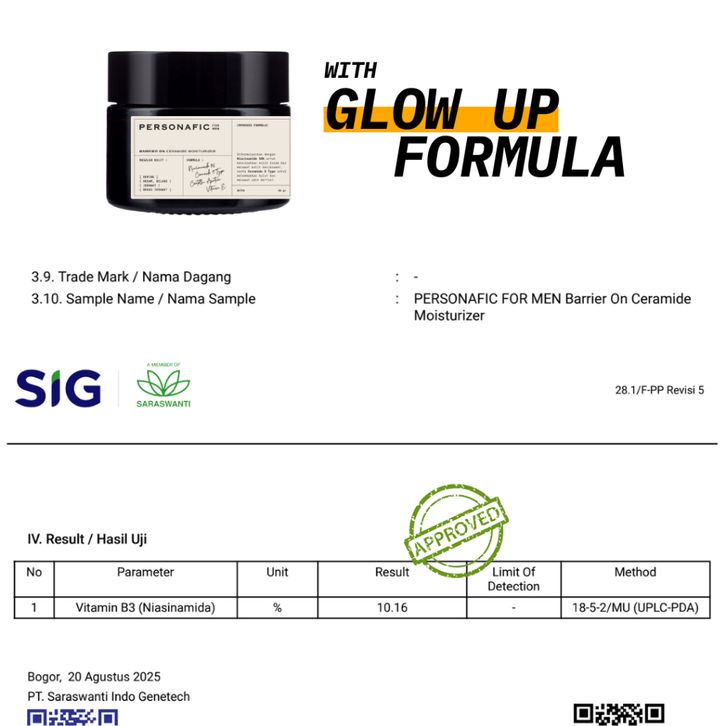 PERSONAFIC Skincare Pria Moisturizer Ceramide Niacinamide Untuk Melembabkan & Mencerahkan Wajah