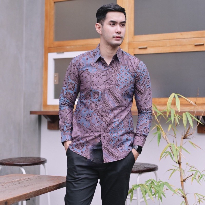 SEKAR JAGAT UNGU Kemeja batik pria lengan panjang full furing katun
