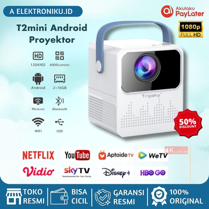 Tripsky T2mini Proyektor Android 1080P TV Proyektor mini portable Home Theater Smart Proyektor