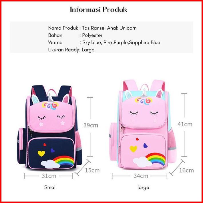 Tas Ransel Backpack Sekolah Anak Cowok Cewek Tk Sd Premium Unicorn T 0208 Sb