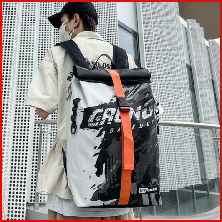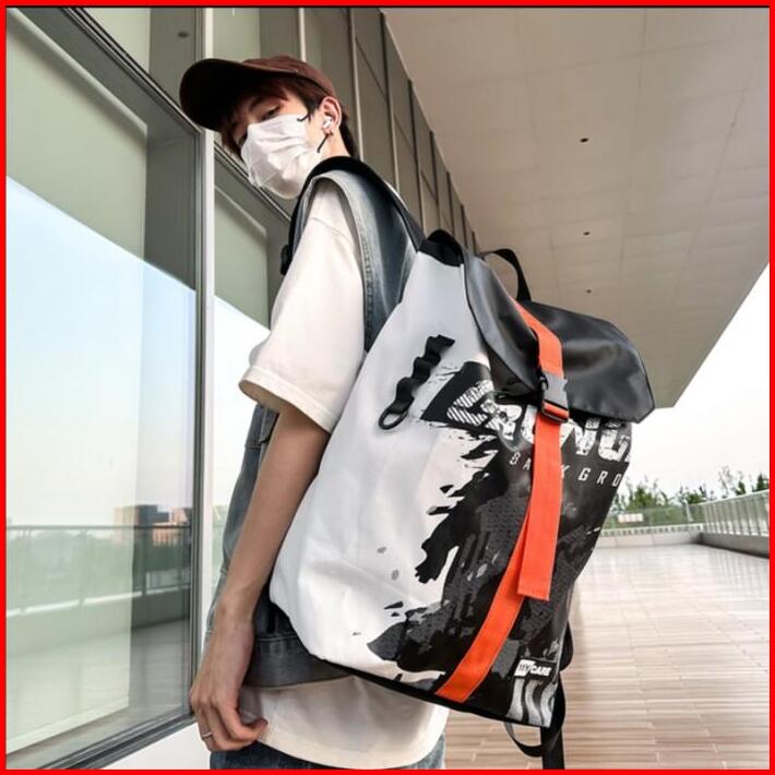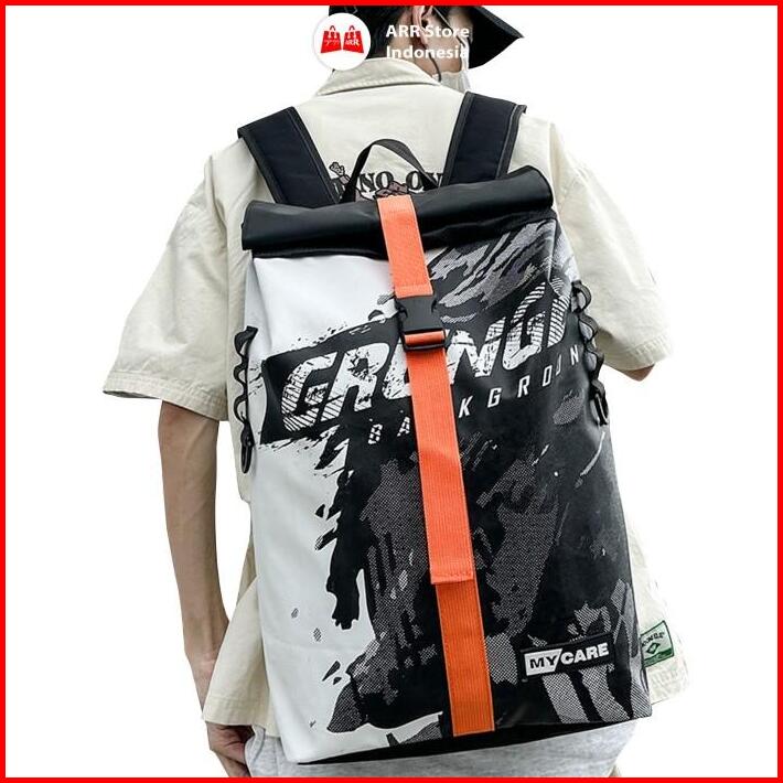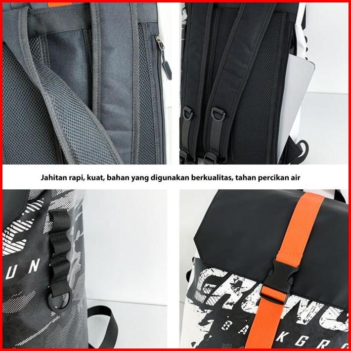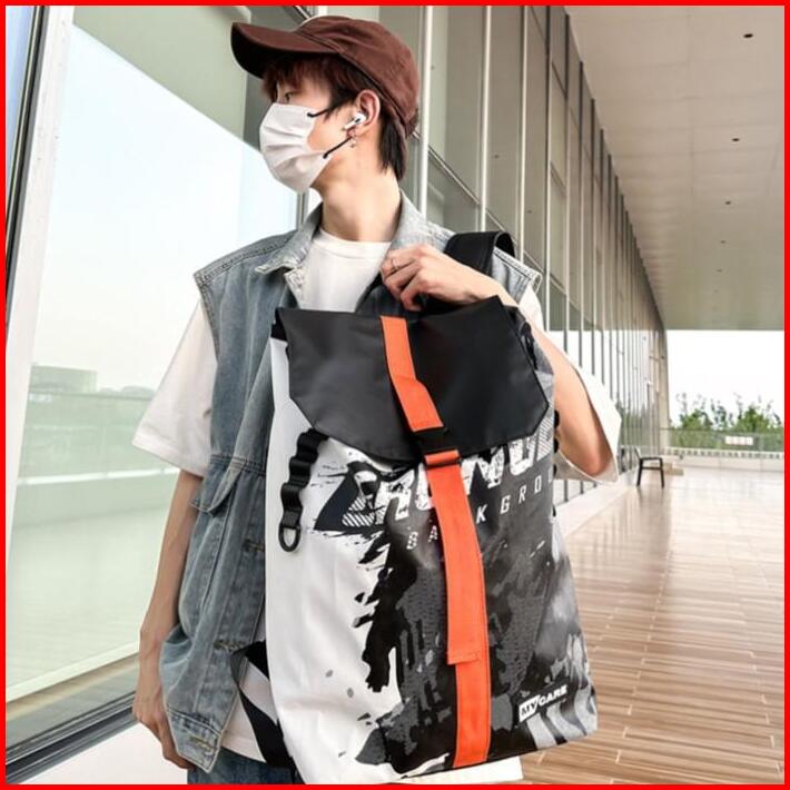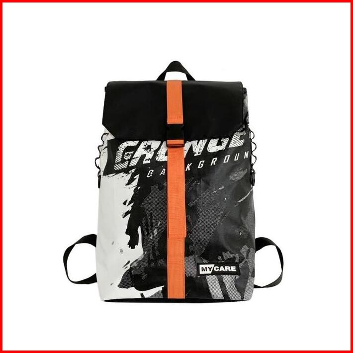 Tas Ransel Laptop Pria Wanita Waterproof Tas Punggung Backpack Oxford Sekolah Kuliah Kerja Motif Orange Strap