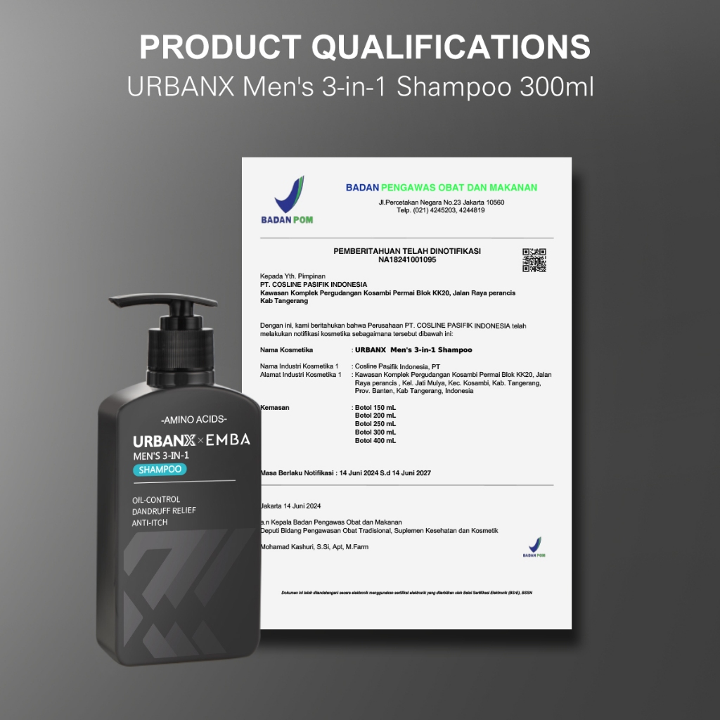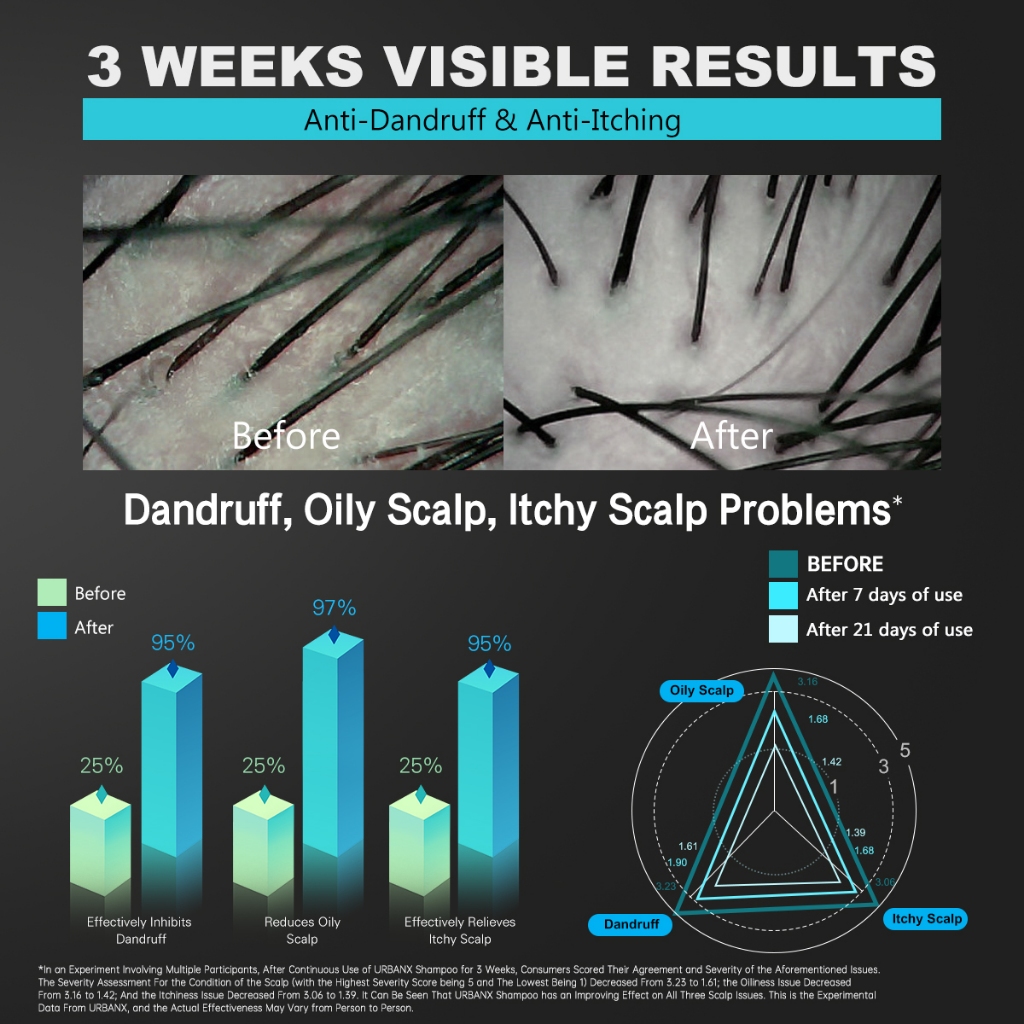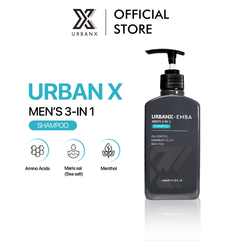 URBANX Men's 3-in-1 Shampoo 300ml Hair Wash Amino Acids Oil-control Dandruff relief Anti-itch MARIS SAL-Antimicrobial