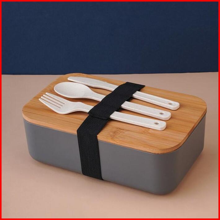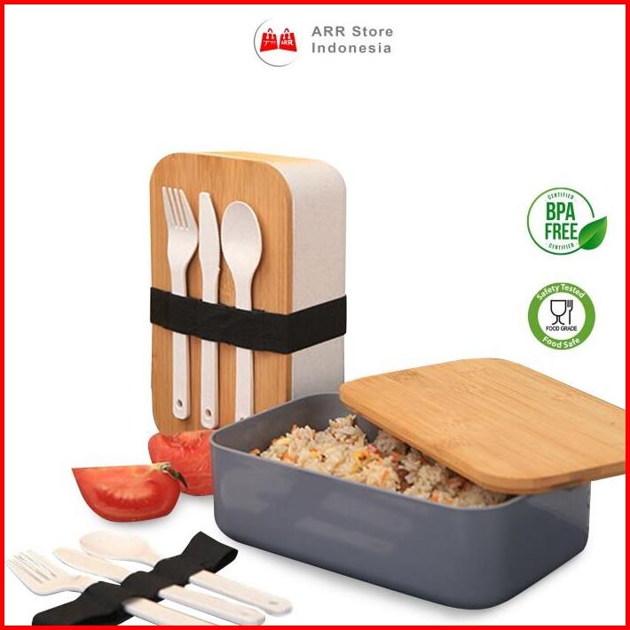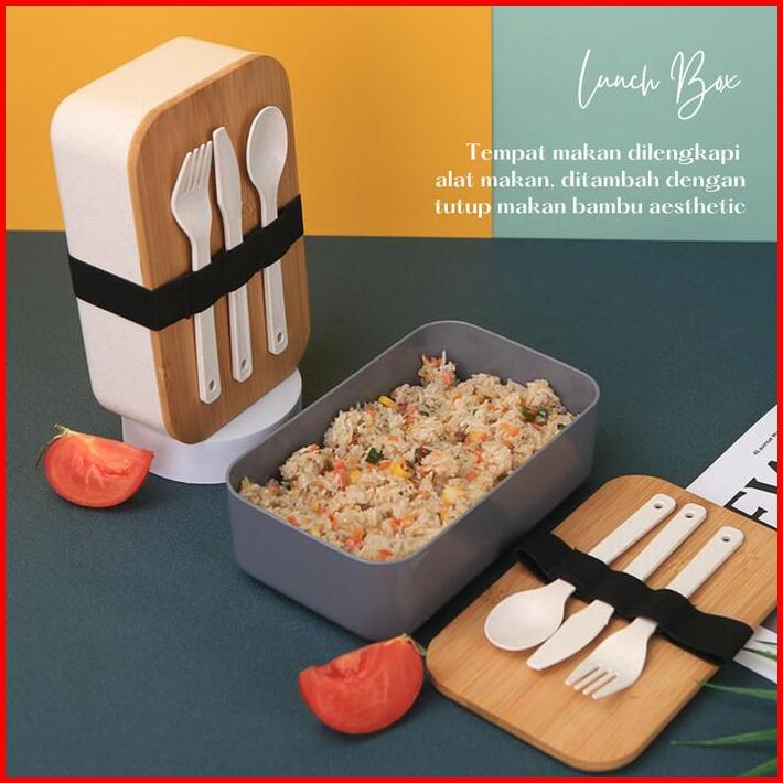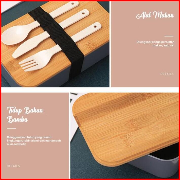 Kotak Bekal Makan Lunch Box Tempat Makan Portable Tutup Bambu Import
