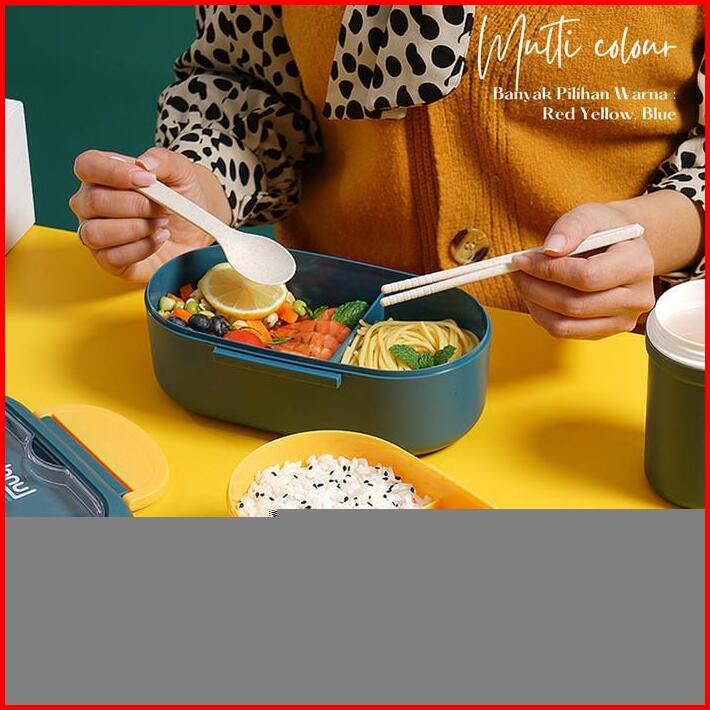 Tempat Bekal Kotak Makan Kotak Bekal Lunch Box Anti Tumpah Free Set Alat Makan