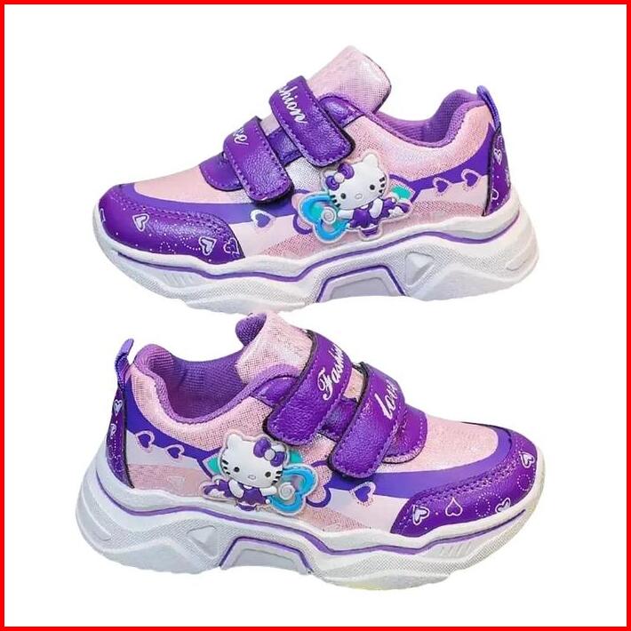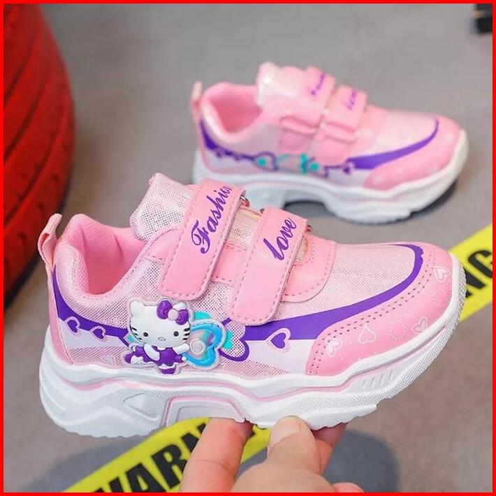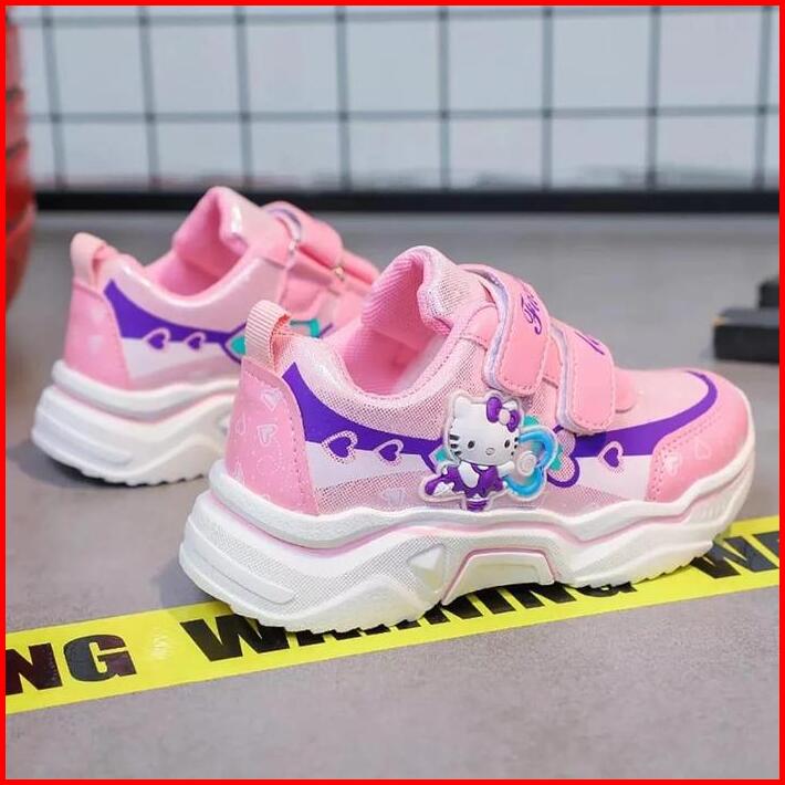 Sepatu Anak Kartun Motif Hello Kitty Fashion Hak Datar 1 Cm Atau Kurang Zora Hitam Pink Velcro Trainer Sol Karet