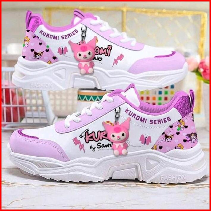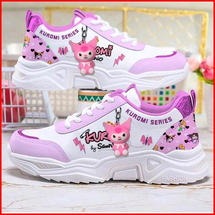 Sepatu Karakter Kurami02 Anak Perempuan Terbaru Fashion Sepatu Kuromi02 Ujung Bundar W Red Trainer Hak Datar 1 Cm Atau K