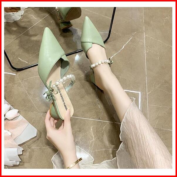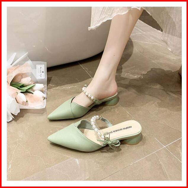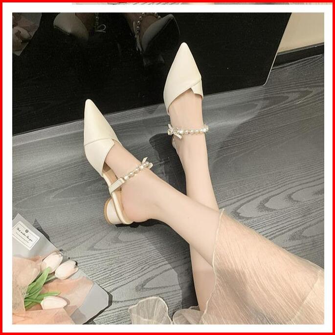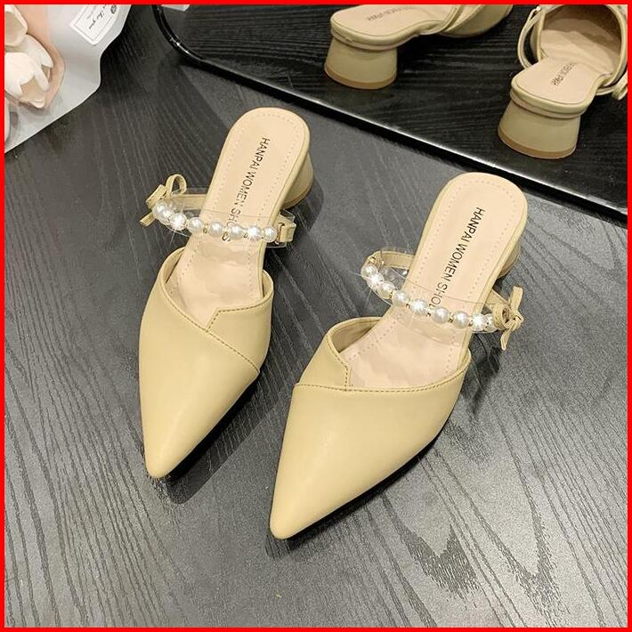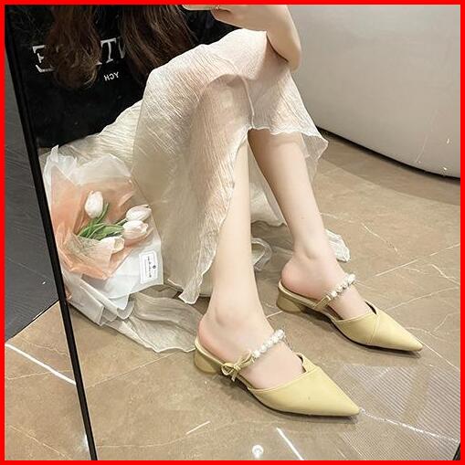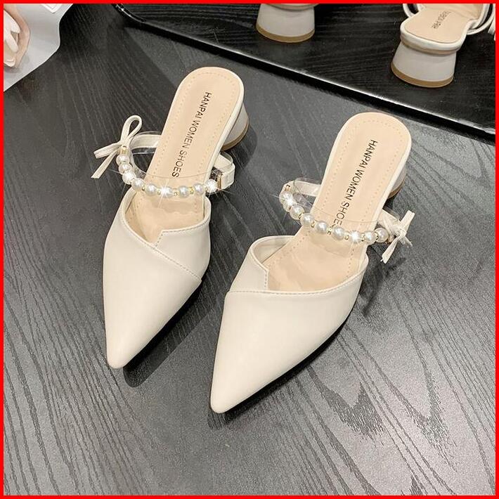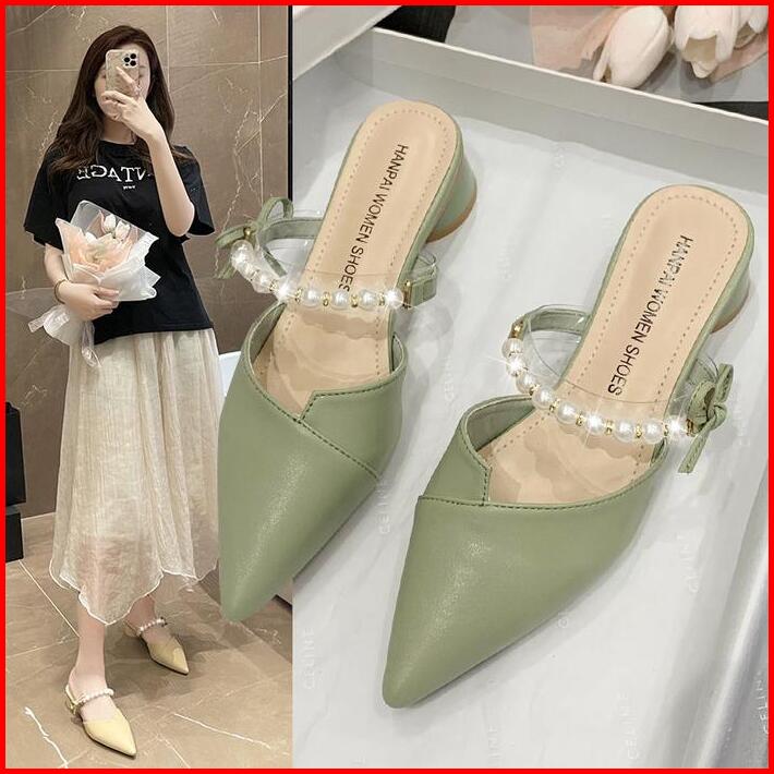 Brandedbaby 35-40 Sepatu Mule Wanita Flat Shoes Dewasa Dengan Pearl Terbaru 2023 Pesta Slip Resistant Elegan