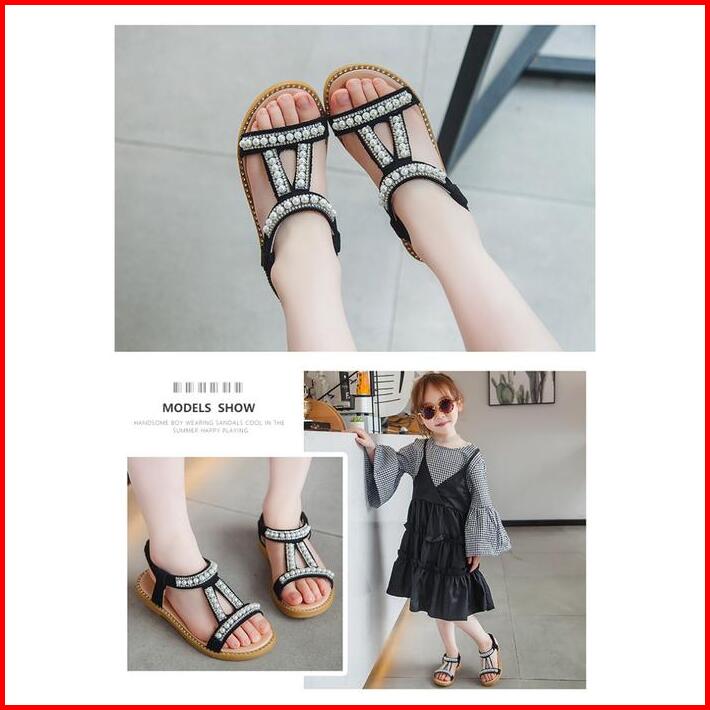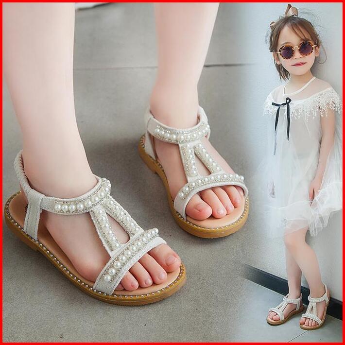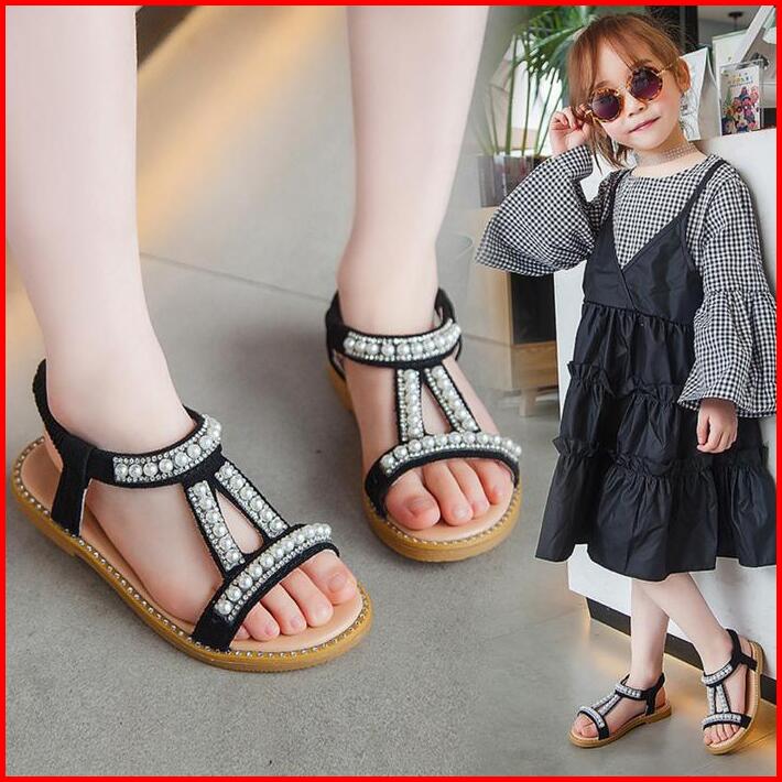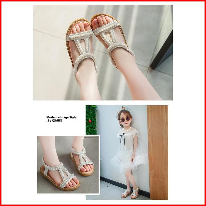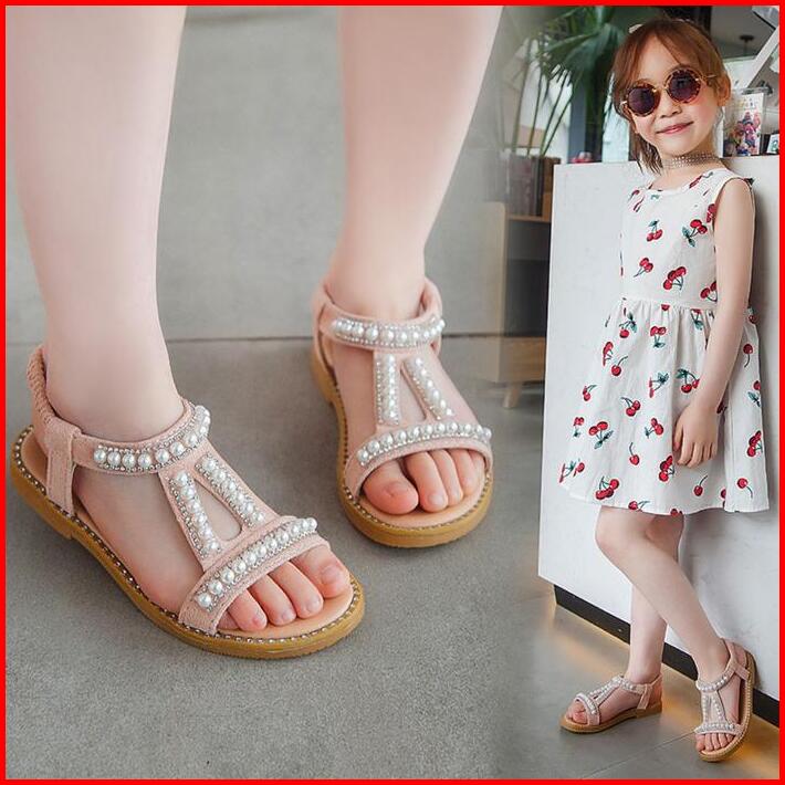 Brandedbaby 16-36 Sandal Casual Anak Perempuan Flat Mutiara Sepatu Sendal Beach Club Girl Shoes Pantai Fashion Korea Sol