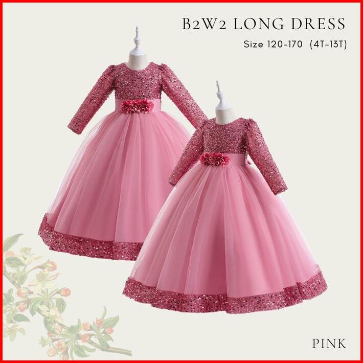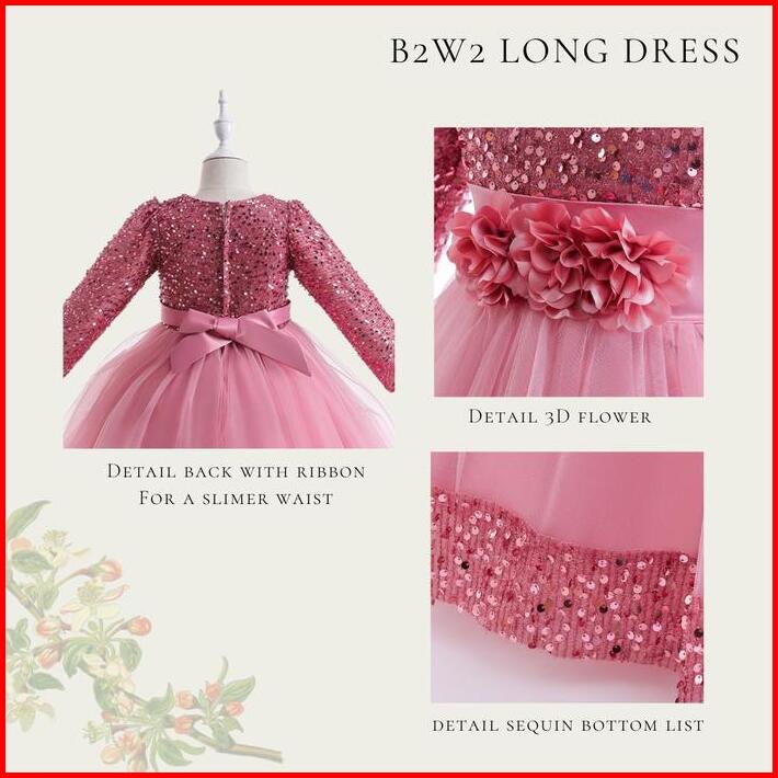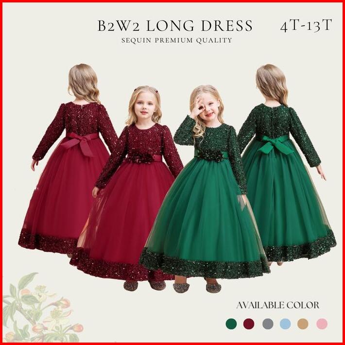 Brandedbaby 5t-13t Long Dress Pesta Anak Perempuan Premium Sequin Tutu Dress Pesta Gamis Pesta Anak Lebaran Perempuan Le