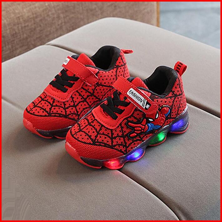 Parayu Kids Sepatu Sneakers Led Anak Laki-laki Motif Spiderman Fashion Import
