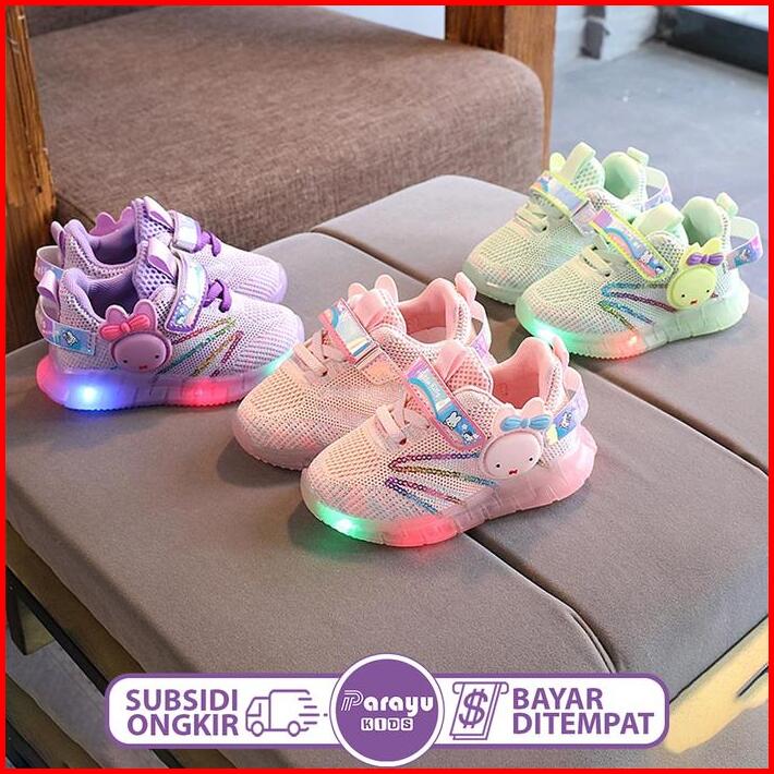 Parayu Kids Sepatu Sneakers Anak Motif Hello Rabbit Led Perempuan Terbaru Import Fashion