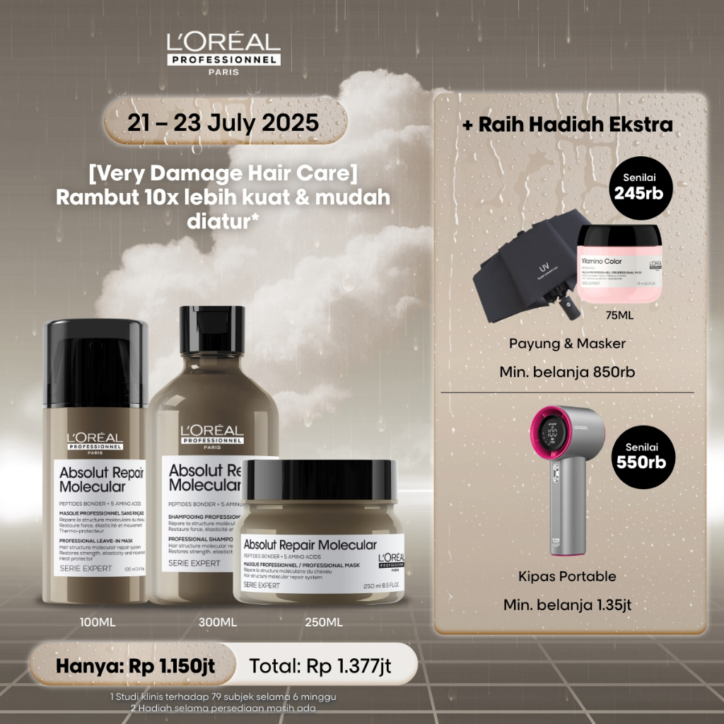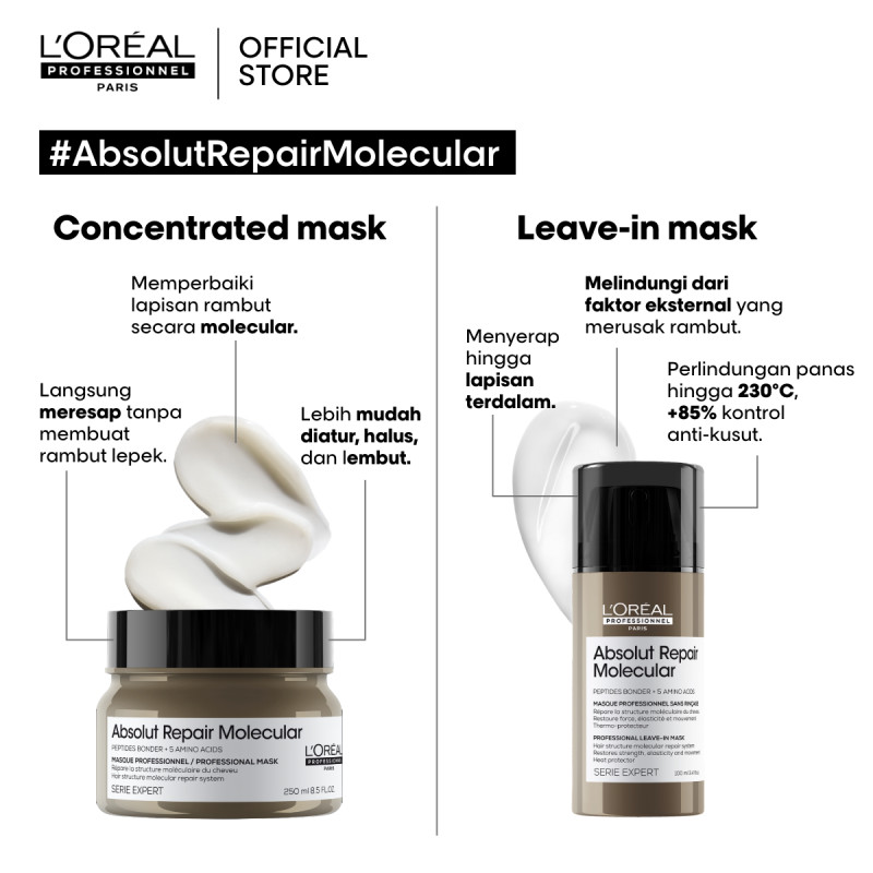 Absolut Repair Molecular Repair & Damaged Nourish Set Shampoo, Concentrated Mask, Leave-in Mask Untuk Memperbaiki Rambut