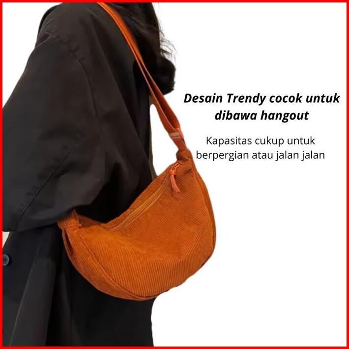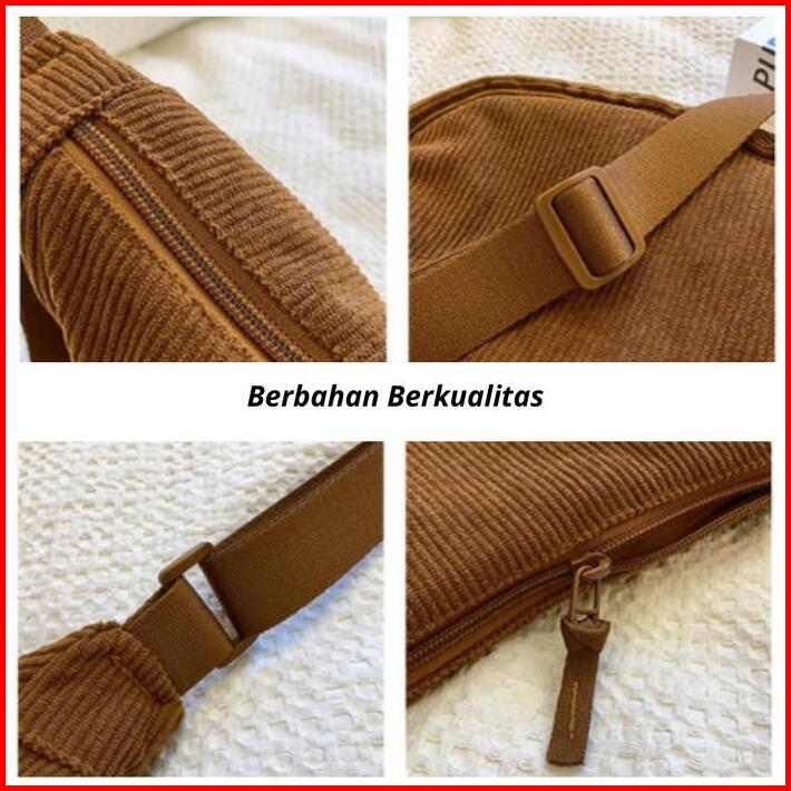 Waist Bag Wanita Tas Selempang Waistbag Slingbag Wanita Pria Crossbody Bag Bahan Corduroy T 0222 Mfb
