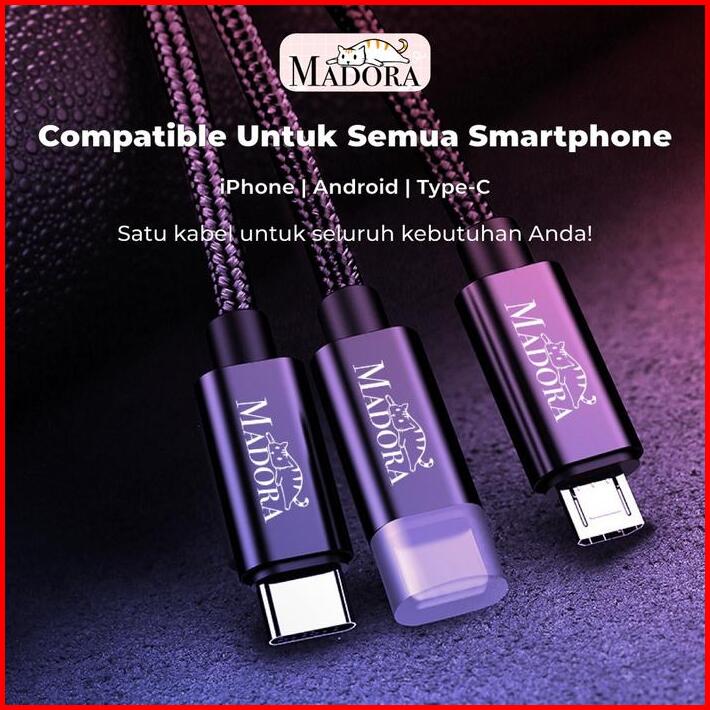 Madora Kabel Charging 3in1 Android Micro Usb Type C Lightning Iphone