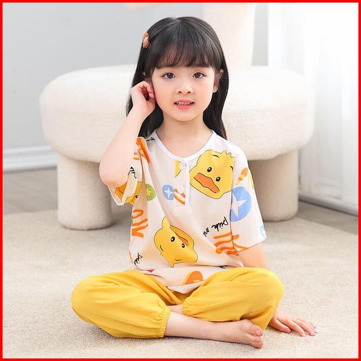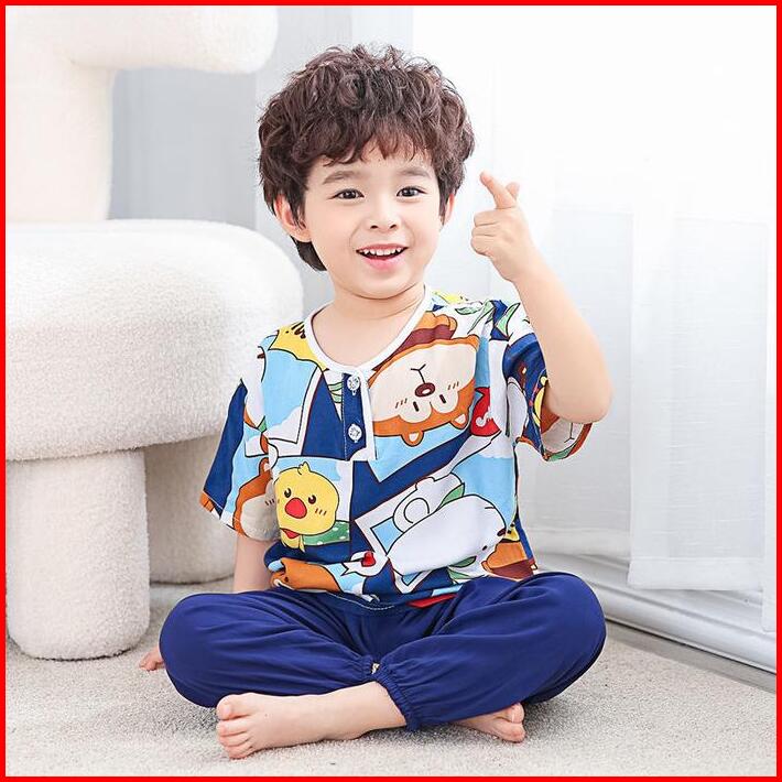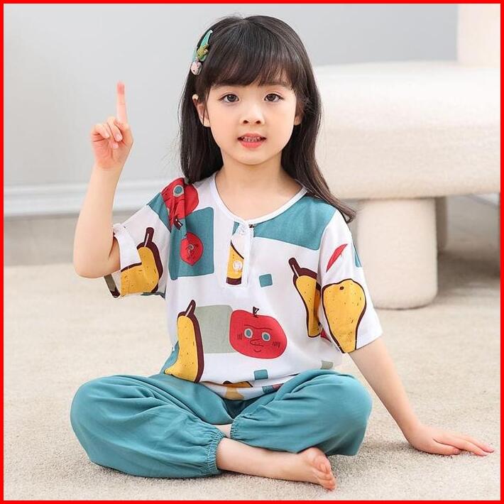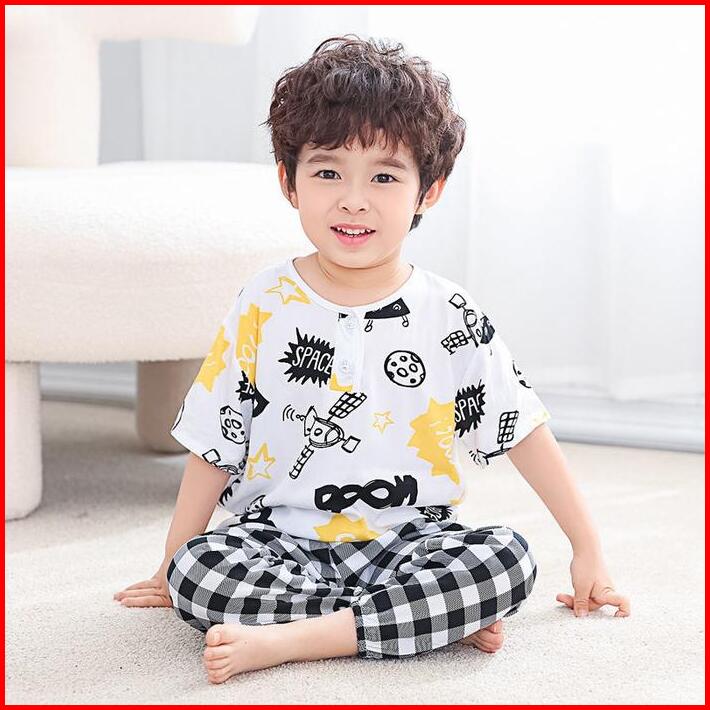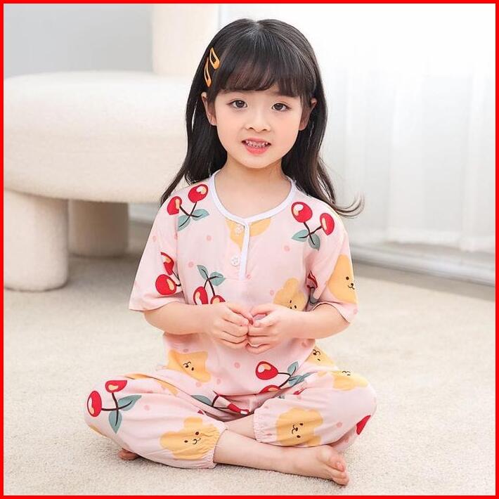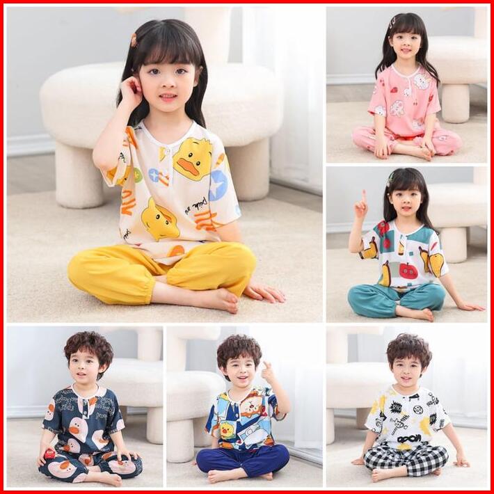 Baju Tidur Setelan Anak Laki Laki Perempuan Import Usia 1-14 Tahun Lengan Pendek Celana Panjang Motif Korea Style Qiqi