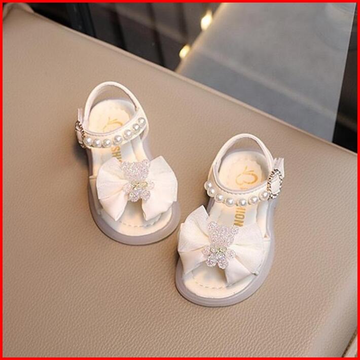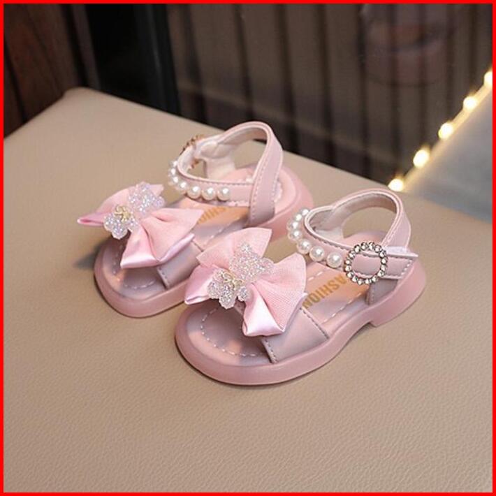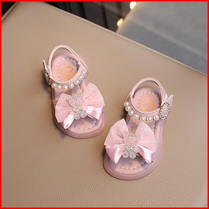 Brandedbaby 16-36 Sepatu Sandal Pesta Bayi Dan Anak Perempuan Sendal Flat Casual Fashion Pita Bear Mutiara Mewah Elegant