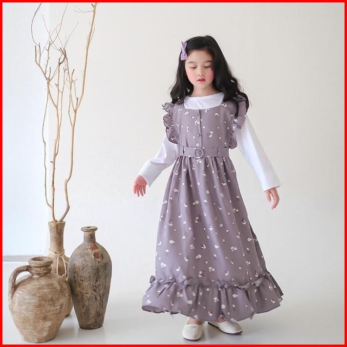 Brandedbaby 3t-10t Gamis Inner 2 In 1 Anak Perempuan Baju Muslim Katun Anak Perempuan
