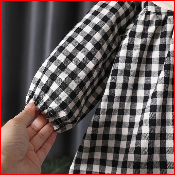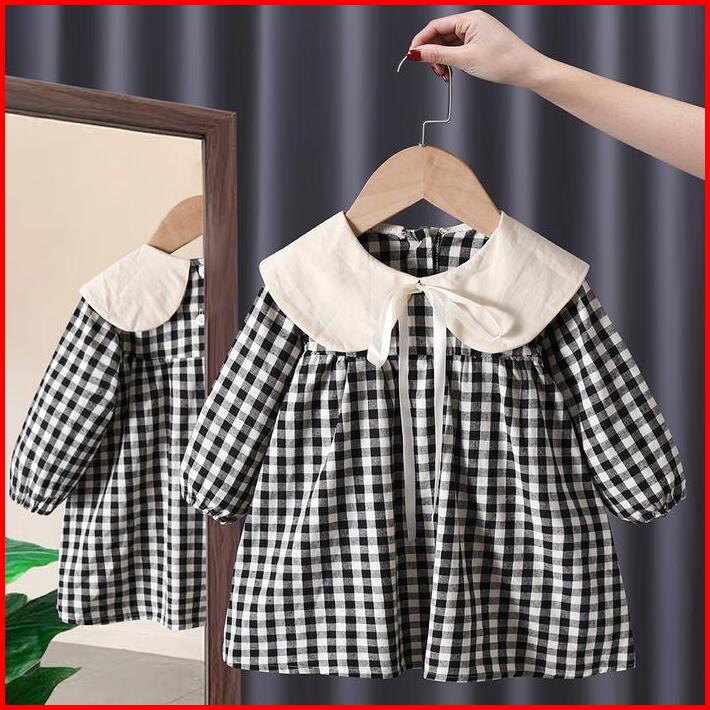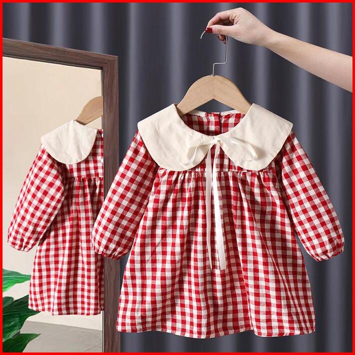 Brandedbaby 1t-5t Dress Casual Anak Motif Kotak Merah Hijau Hitam Style Korea Lengan Panjang