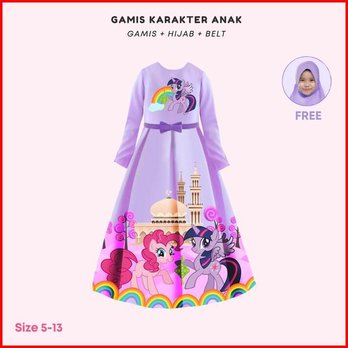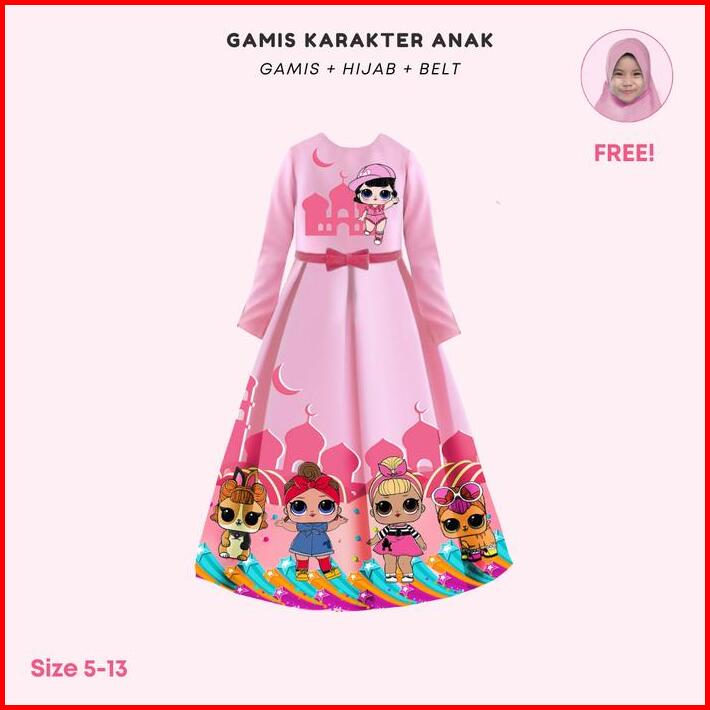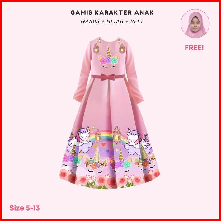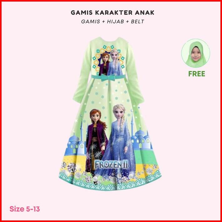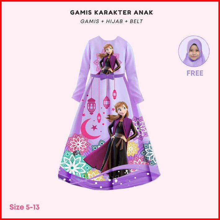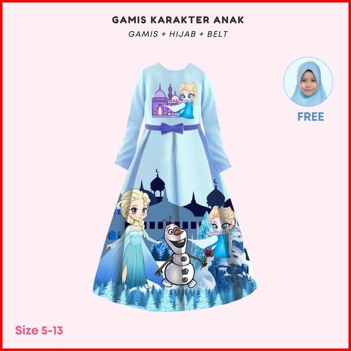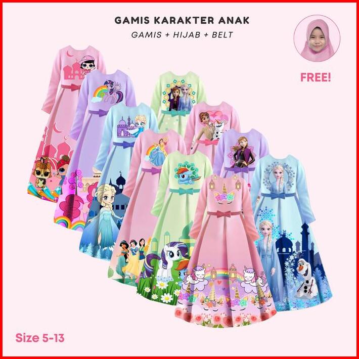 Brandedbaby Gamis Scuba Panjang Anak Karakter 3-in-1 Baju Muslim Anak Karakter Set Hijab Motif Princess 4-5 Tahun White