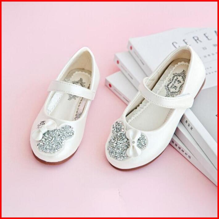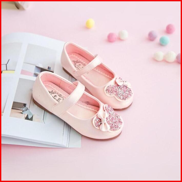 Brandedbaby 26-38 Sepatu Anak Perempuan Import Flatshoes Motif Glitter Pink Flat Balet Putih Fashion Shoes Selop