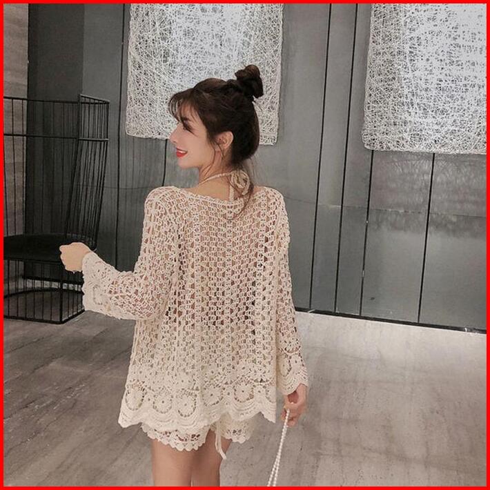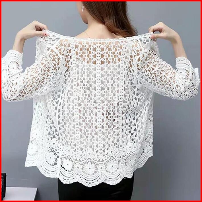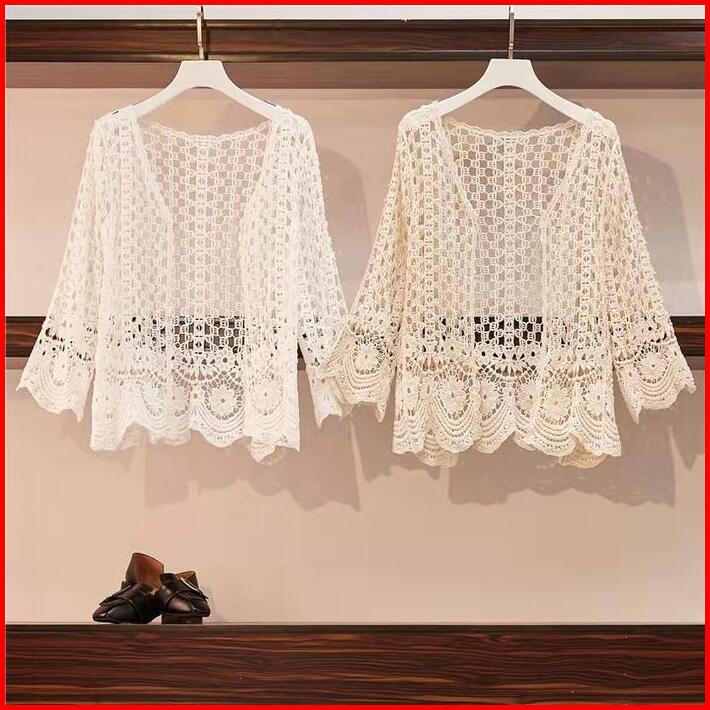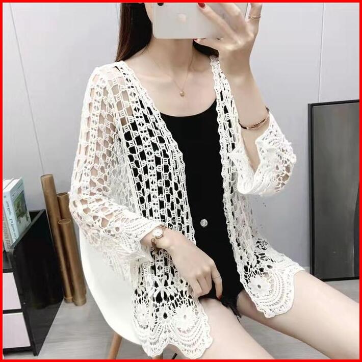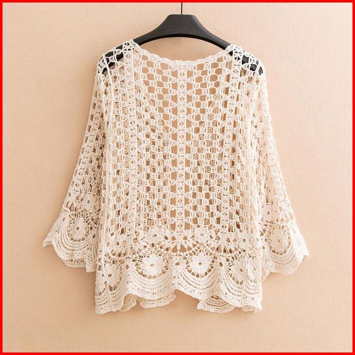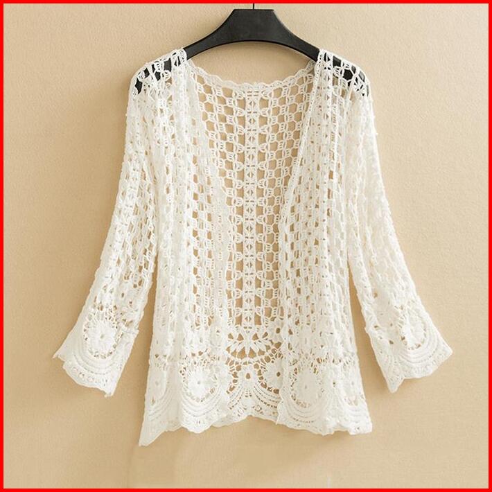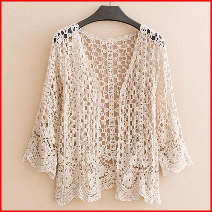 Wanita Kardigan Musim Panas Kemeja Rajutan Modis Kasual Lengan Panjang Jaket Pantai