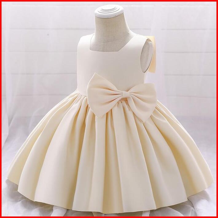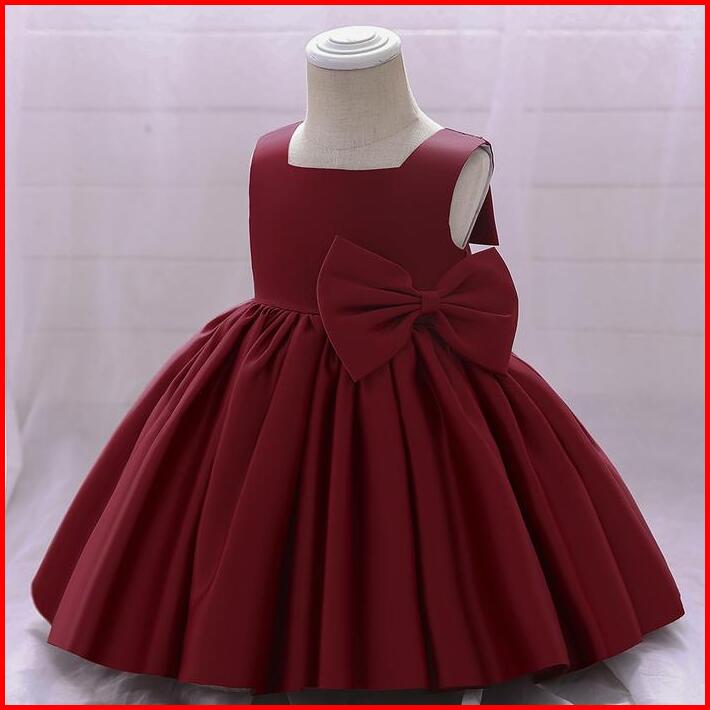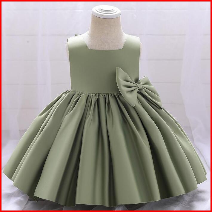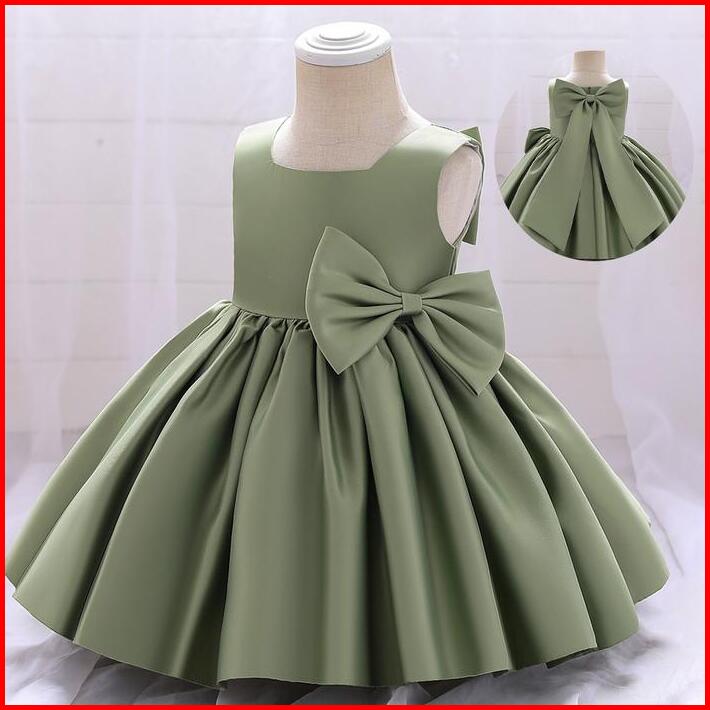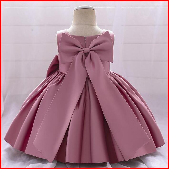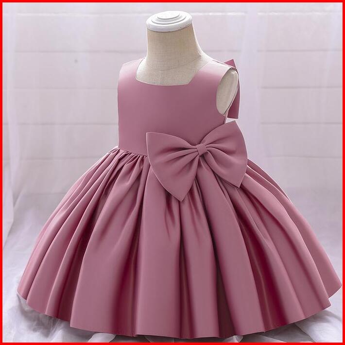 1-10 Tahun Wedding Gaun Anak Perempuan Big Bow Birthday Dress For Baby Girl Solid Kain Satin Princess Dresses Biru Bola