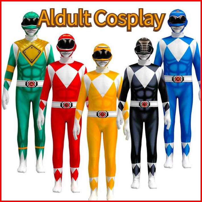 Pria Dewasa Wanita Perkasa Morphin Power Rangers Cosplay Kostum Halloween Pesta Mewah Jumpsuit
