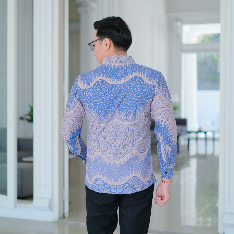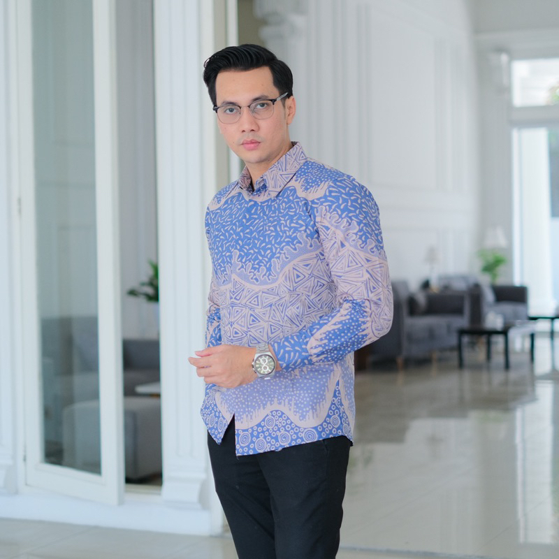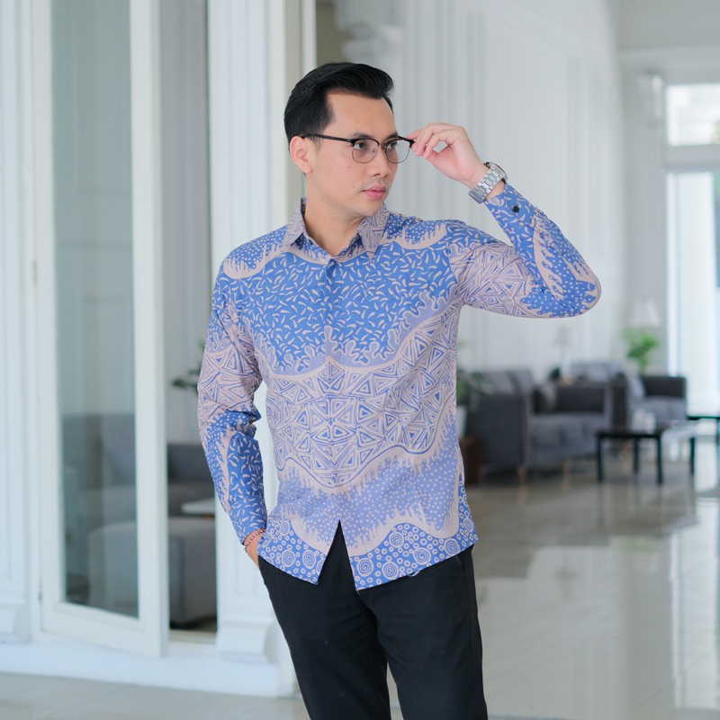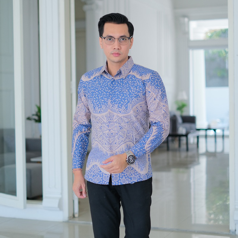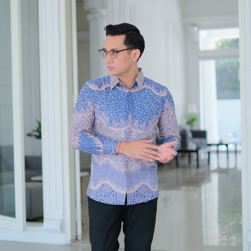 kahiyang biru kemeja batik pria lengan panjang full furing