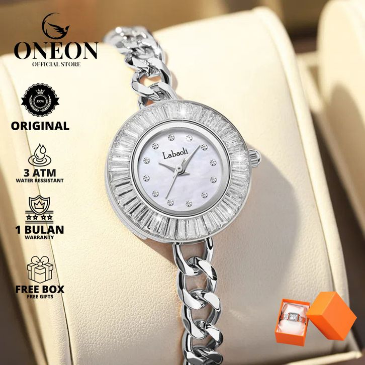 PROMO ONEON Jam Tangan Wanita Rantai Kristal Original Brand Mewah Anti Air Cewek Gelang Perak Kecil Watch ubicl